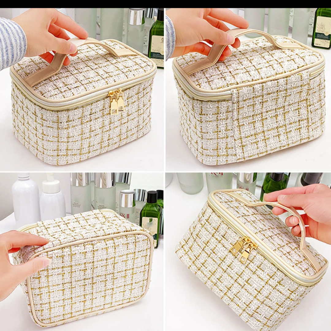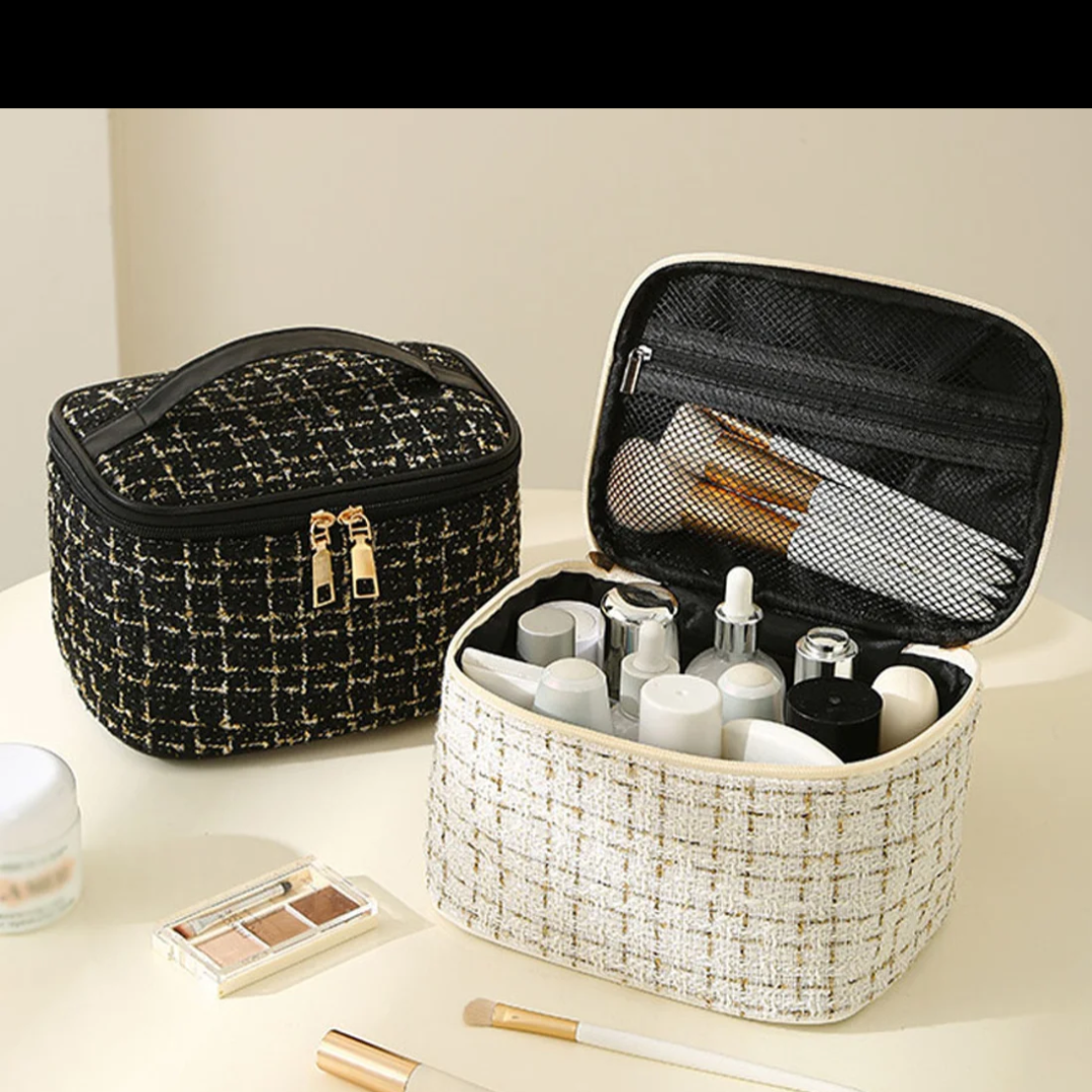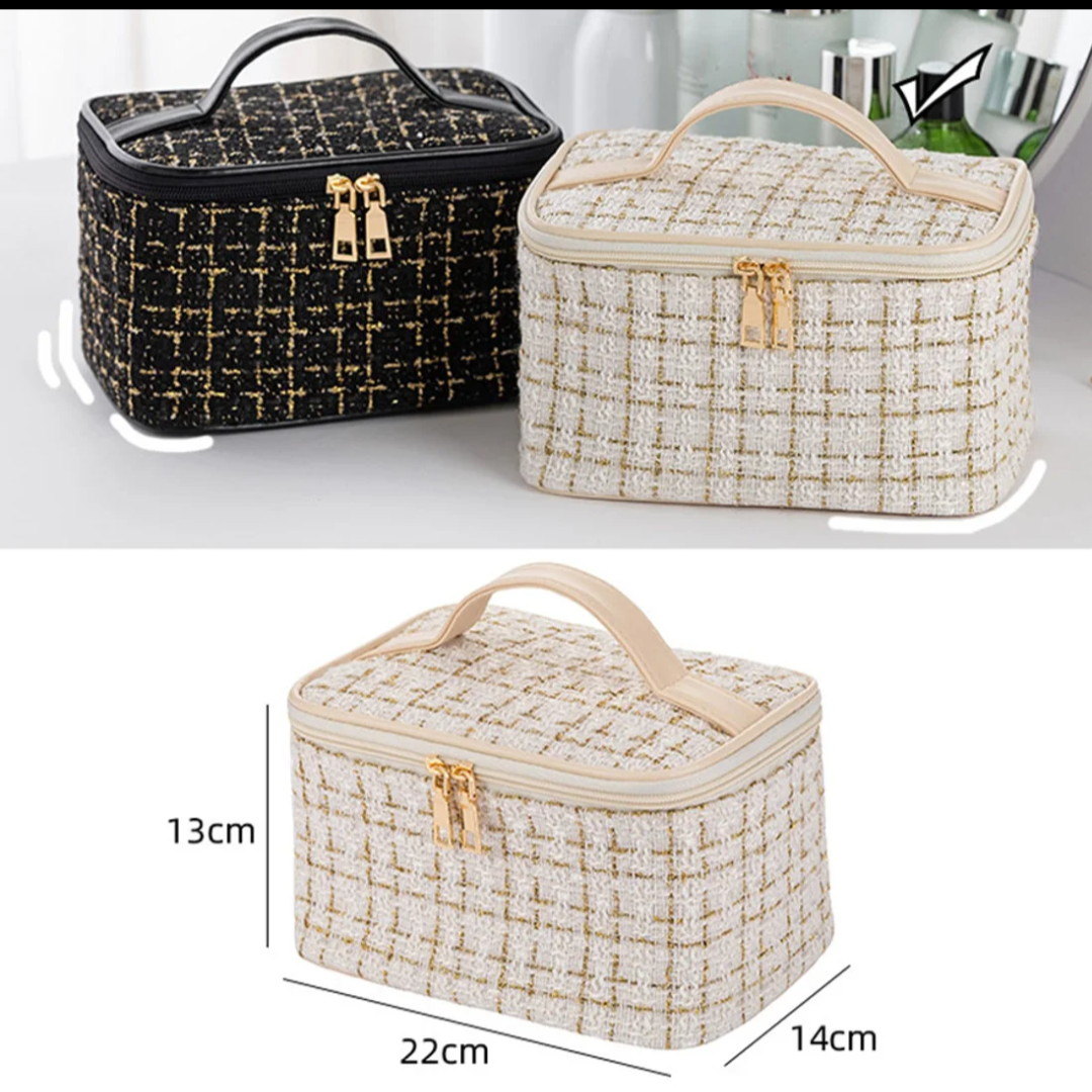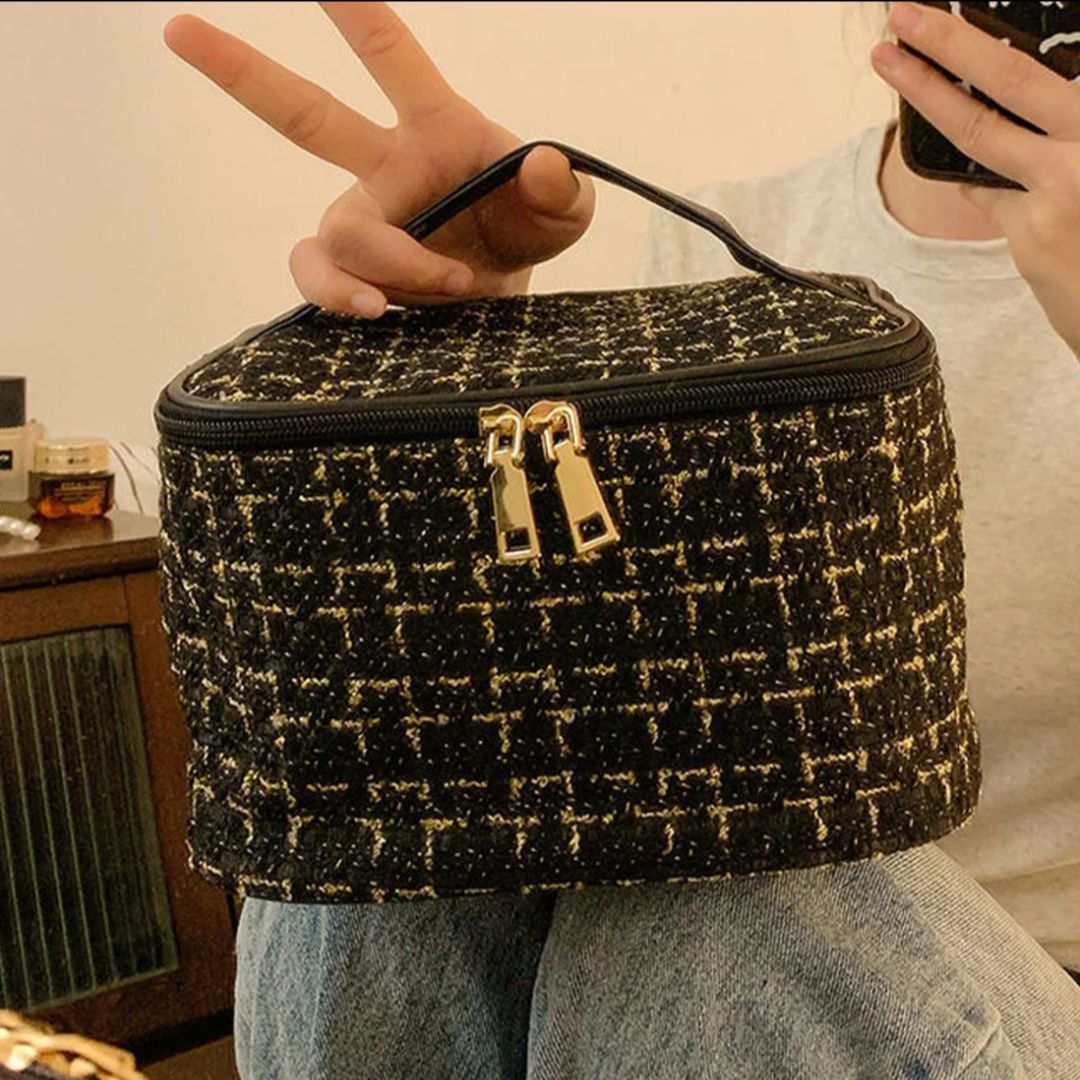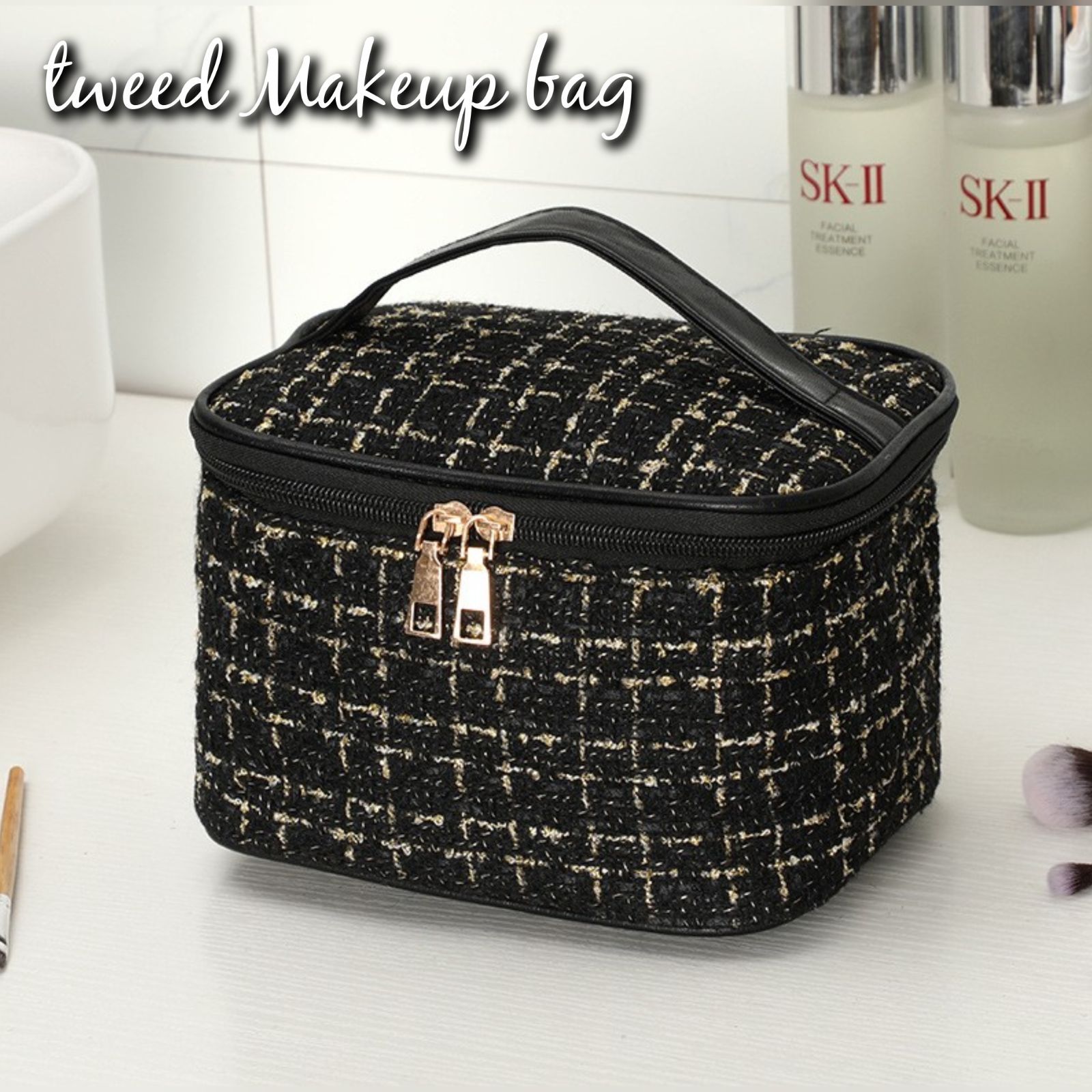 ツイード メイクポーチ バニティ 化粧ポーチ トラベルポーチ 収納 韓国