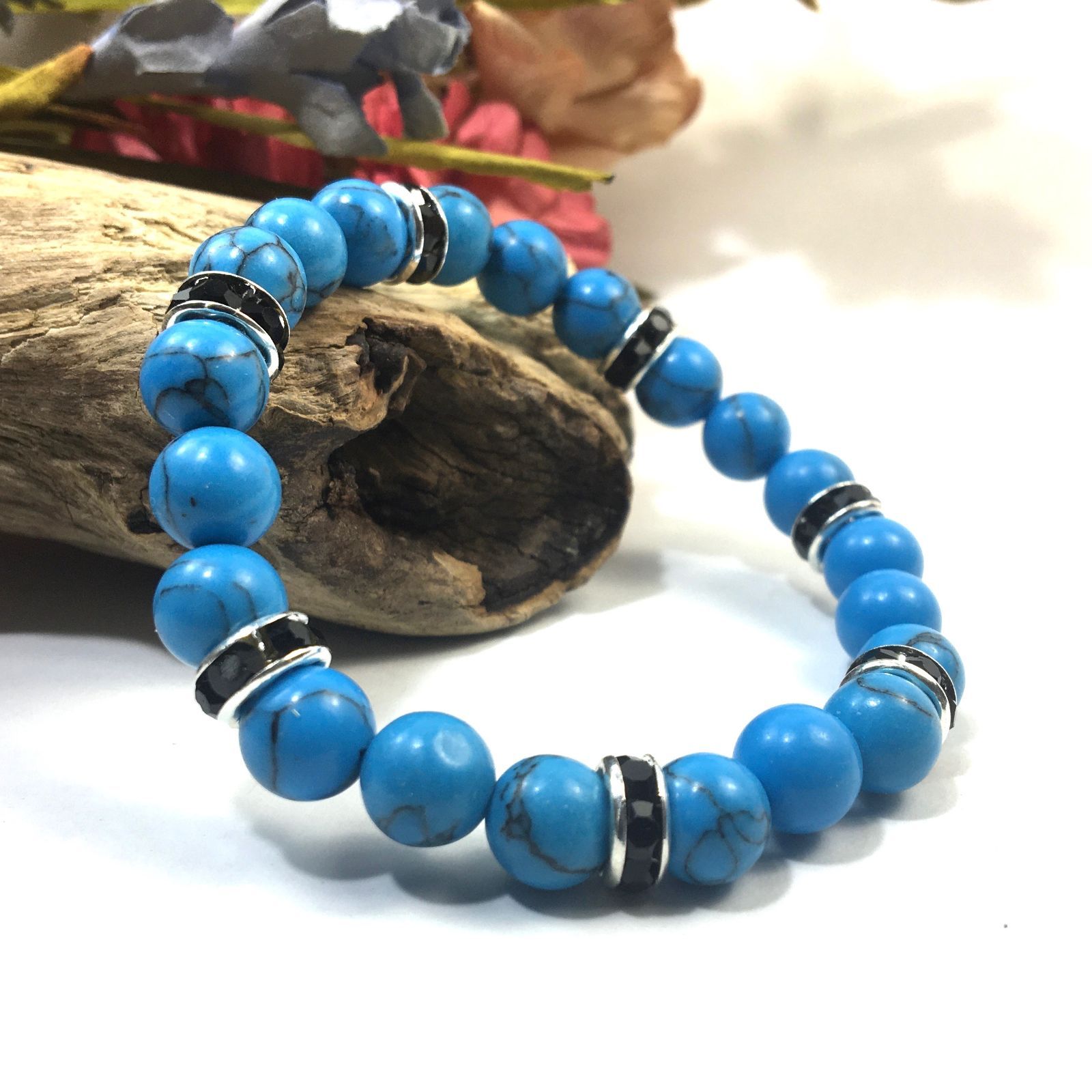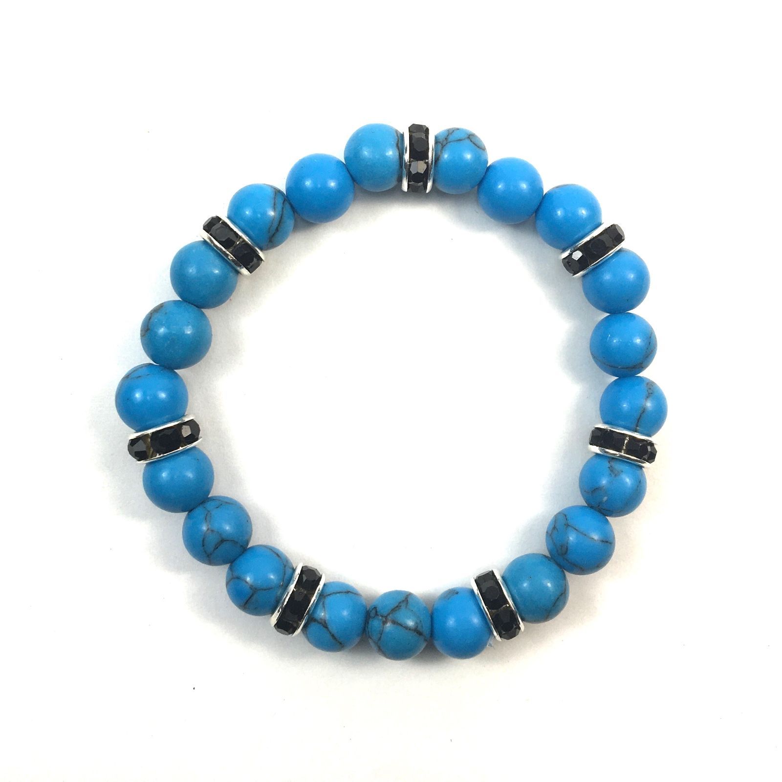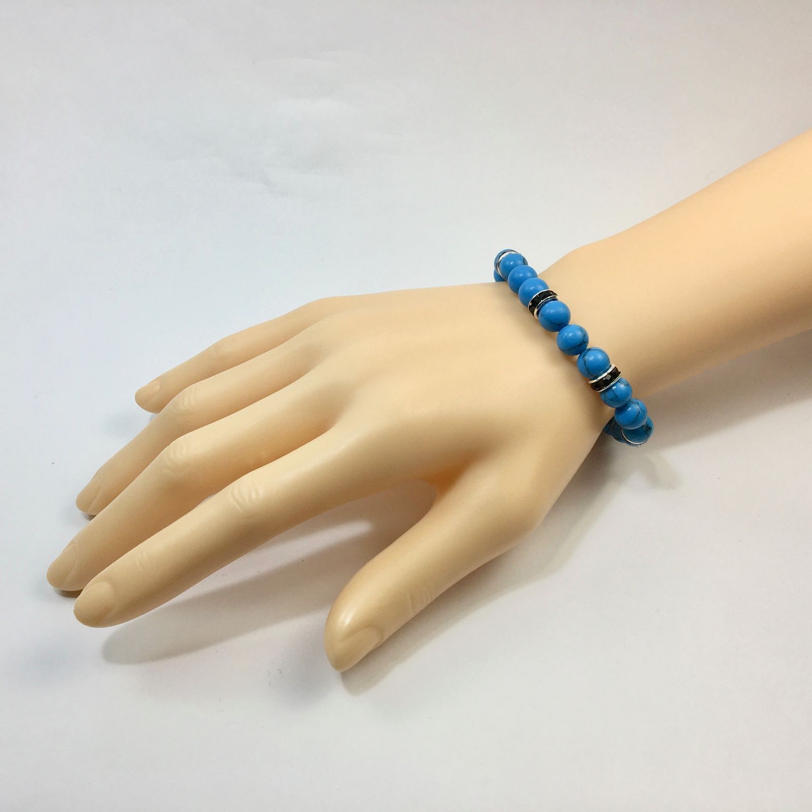 こちらは、8mm玉のターコイズを使ったパワーストーンブレスレットです。シンプルなデザインでどんなコーディネートにも合わせやすいデザインに仕上げています。サイズは内周約15cmです。気になる方は是非この機会にどうぞ。