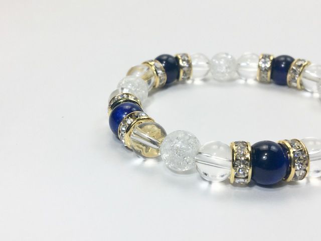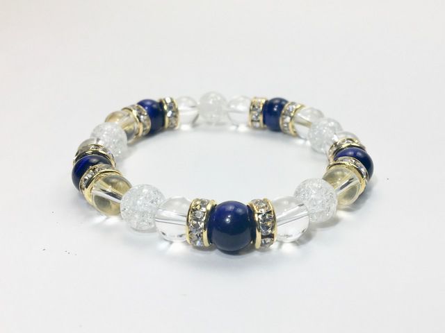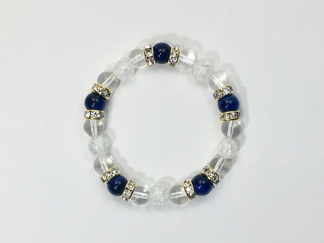 こちらは、8mm玉のブルータイガーアイと水晶、クラック水晶を組み合わせたパワーストーンブレスレットです。今回は五芒星デザインで石を配置しております。五芒星とは、陰陽道の基本概念となった陰陽五行説、木・火・土・金・水の5つの元素の働きの相克を表したものであり、五芒星は厄除・開運を願うデザインと重宝されているデザインです。サイズは内周約15cmです。気になる方は是非この機会にどうぞ。