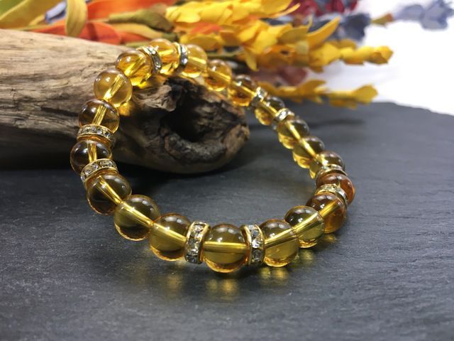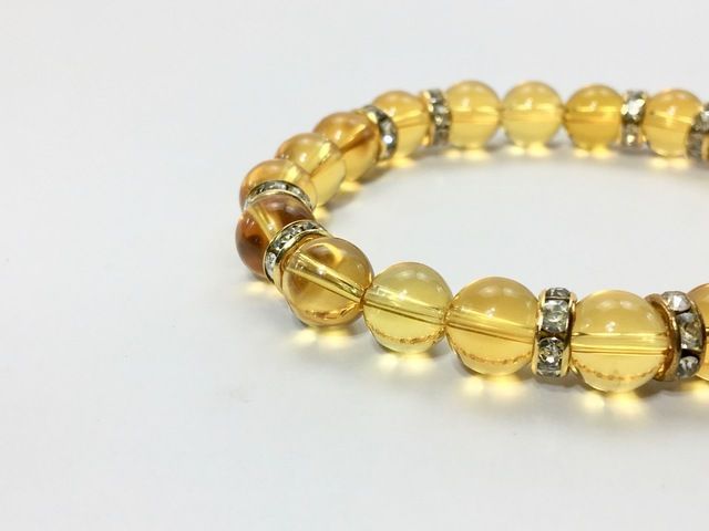 こちらは、8mm玉のシトリンを使ったパワーストーンブレスレットです。シンプルなデザインでどんなコーディネートにも合わせやすいデザインに仕上げています。サイズは内周約15cmです。気になる方は是非この機会にどうぞ。