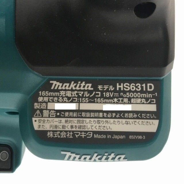 商品名:☆未使用品☆makita マキタ 18V 165mm 充電式マルノコ HS631DZS 本体のみ 鮫肌チップソー付 コードレス 丸のこ 丸ノコ