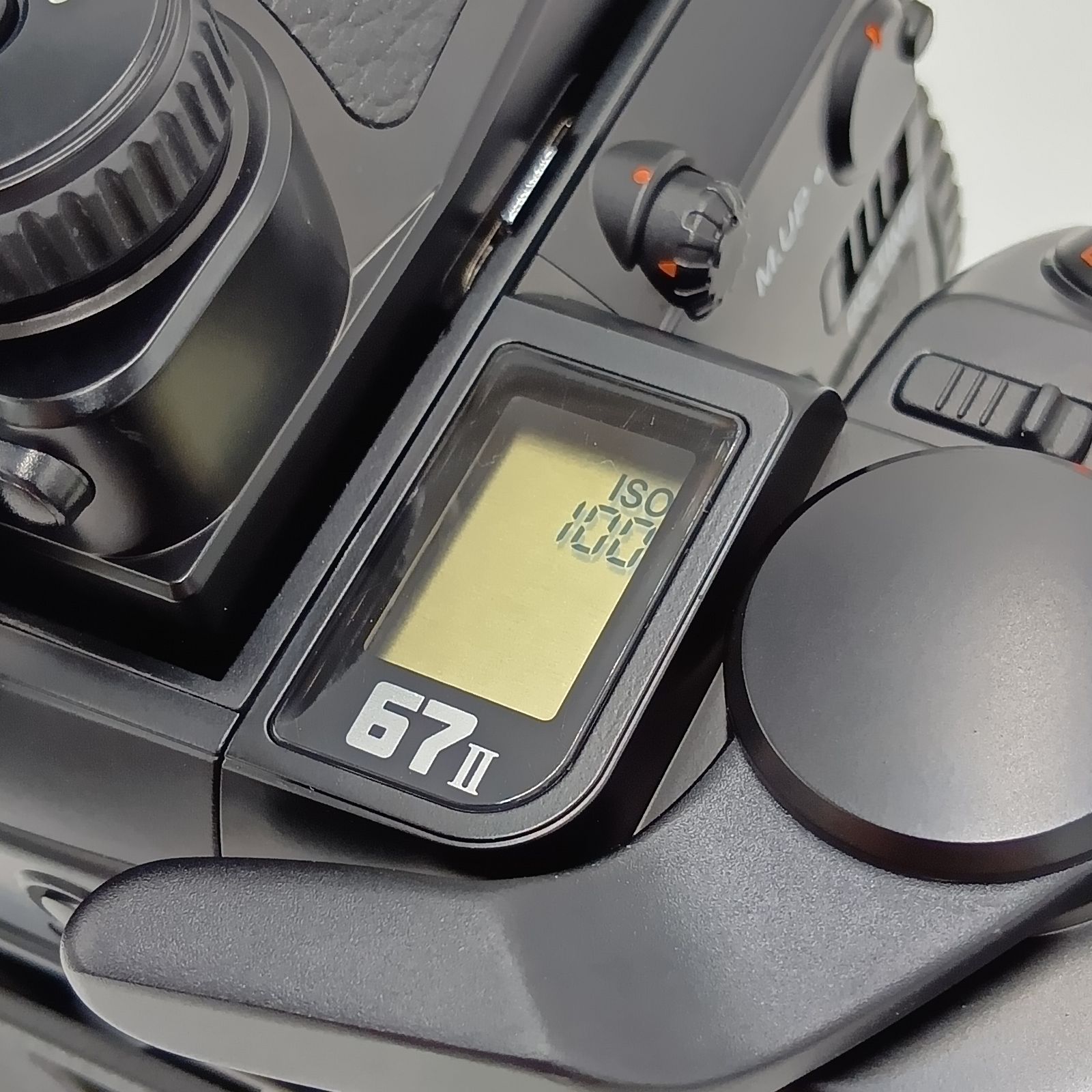 ・AEペンタプリズムファインダー67II装着により、絞り優先AEと3種類の測光モード(分割・中央重点・スポット)が使え、露出設定が非常に快適です。