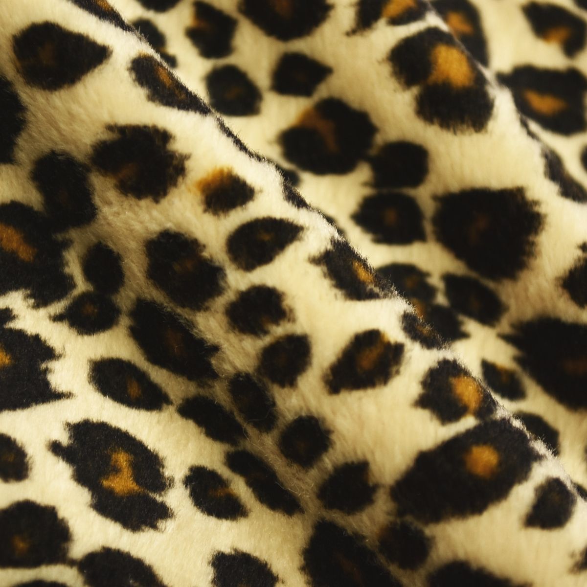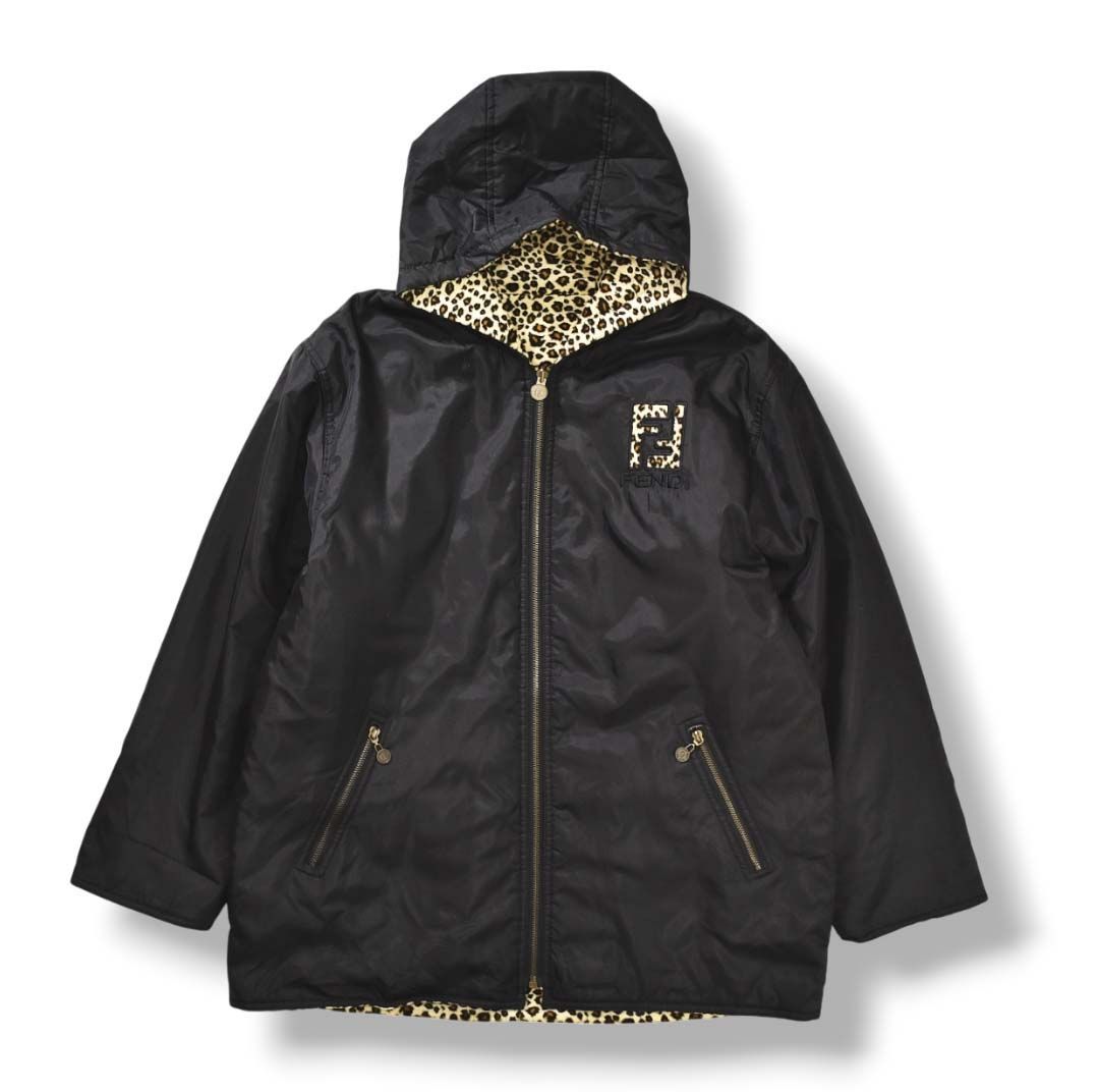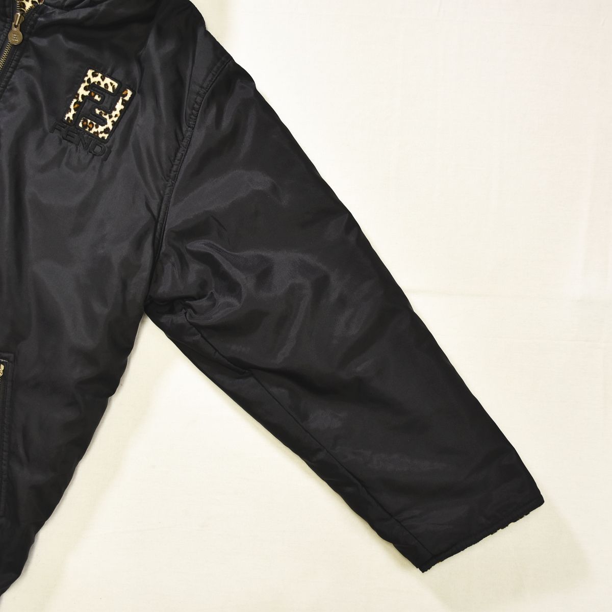表面はシンプルなナイロンシェルにブランドロゴ、裏面は全面レオパード柄のファー調仕上げという、両A面のような存在感を持つ一着です。
