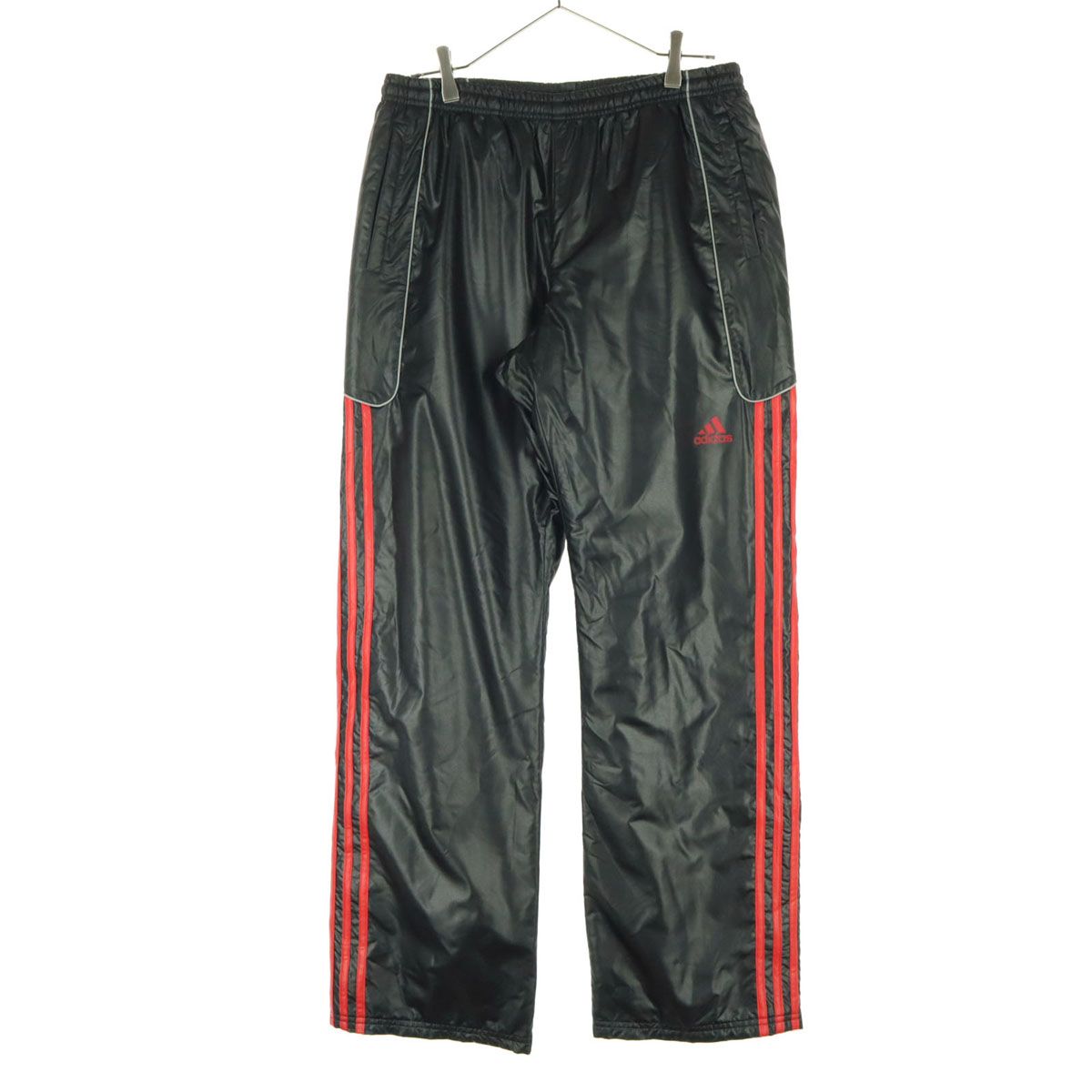 美品 adidas アディダス ワンポイントロゴ シャカシャカ 中綿ロングパンツ O ブラック メンズ