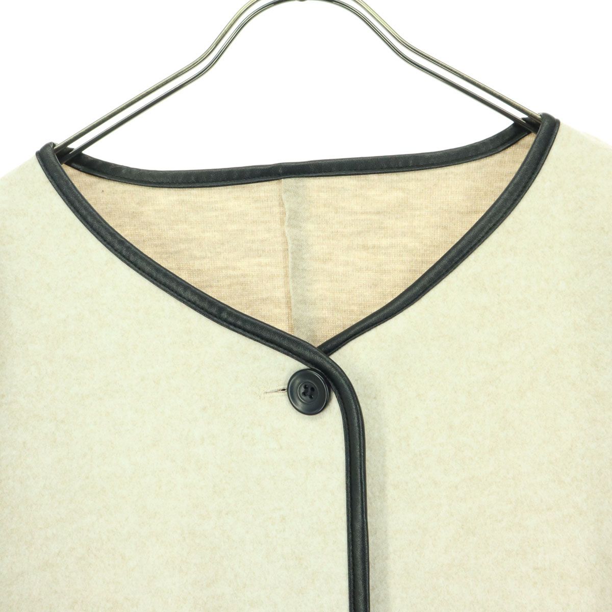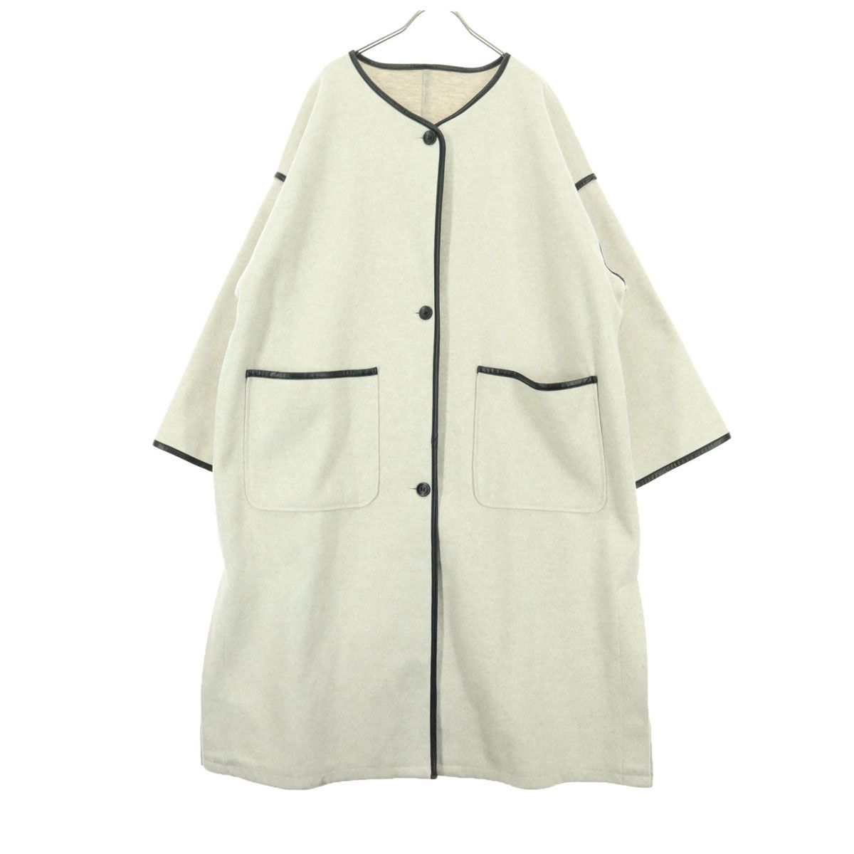 美品 Discoat ディスコート 長袖 ノーカラーコート F ベージュ レディース
