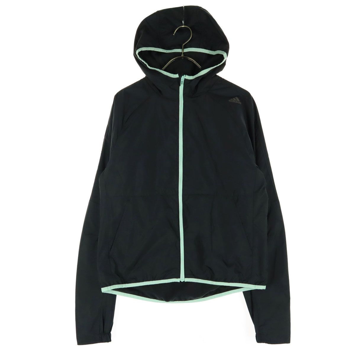 adidas アディダス ワンポイントロゴ ツートンカラー 長袖 ウインドブレーカー M ブラック レディース