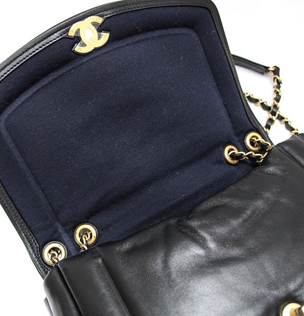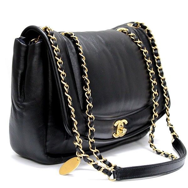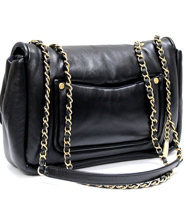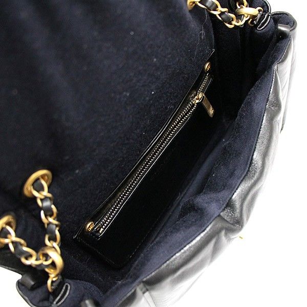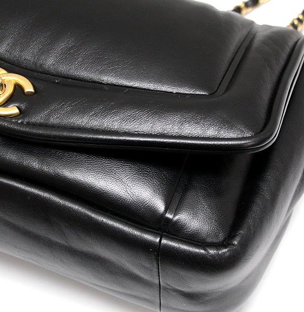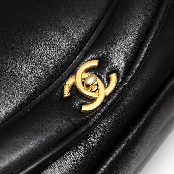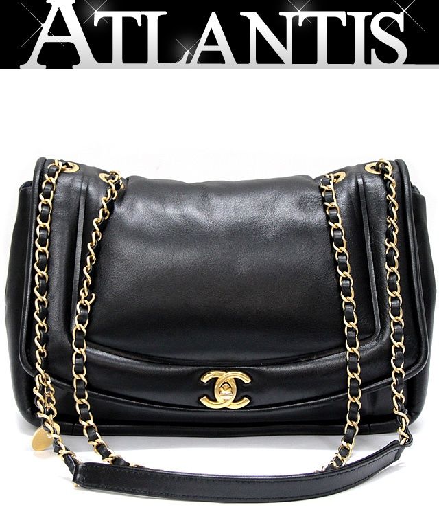 シャネル CHANEL ダイアナ パフィーフラップ ダブルチェーン ショルダーバッグ ラム 黒 28番台【72844】