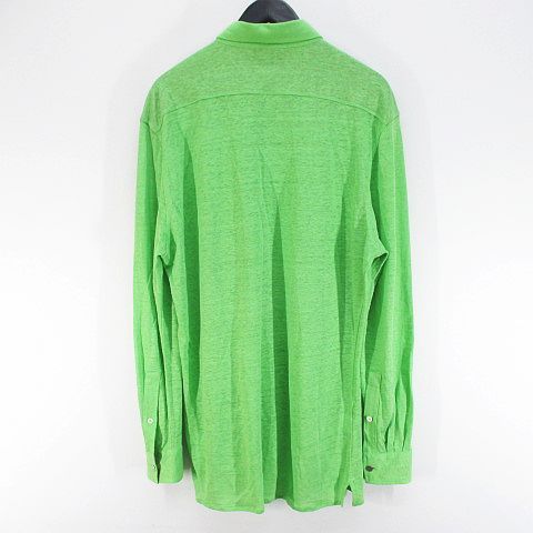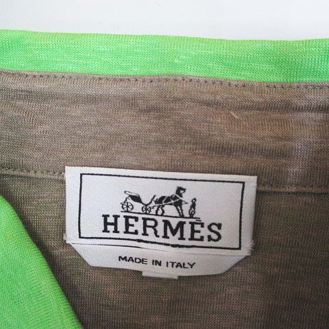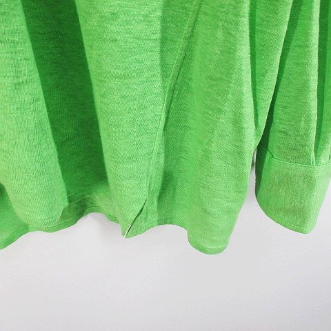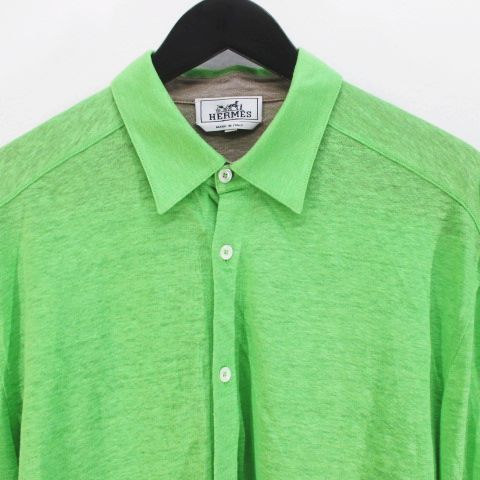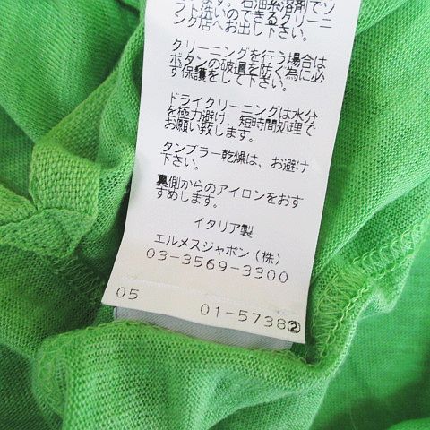 【商品名】エルメス HERMES 長袖 リネン カットソー M 緑系 ライトグリーン ボタン サイドカット 透け感 イタリア製