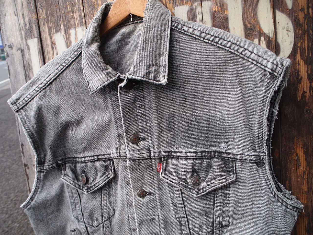 ■ブランド・モデル名・生産国:80's Vintage USA製【LEVI'S】ビンテージ リーバイス 70507 ブラックデニムジャケット カットオフ ベスト ハーレー ワッペン Gジャン サード 3rd 4th◆size:US-M MADE IN USA