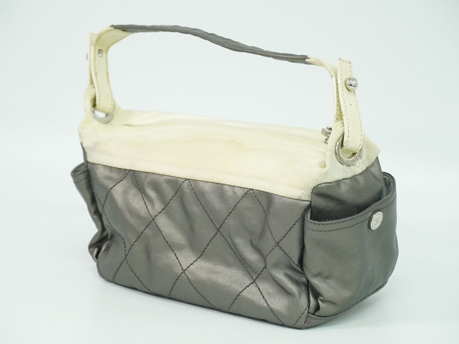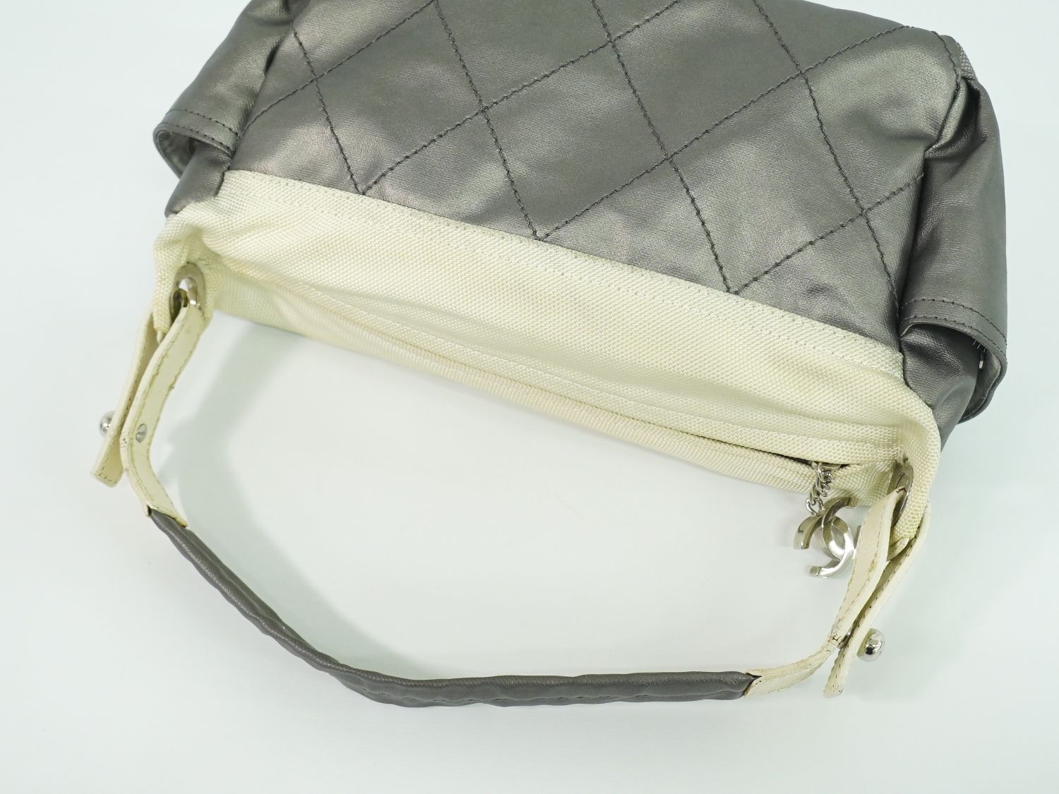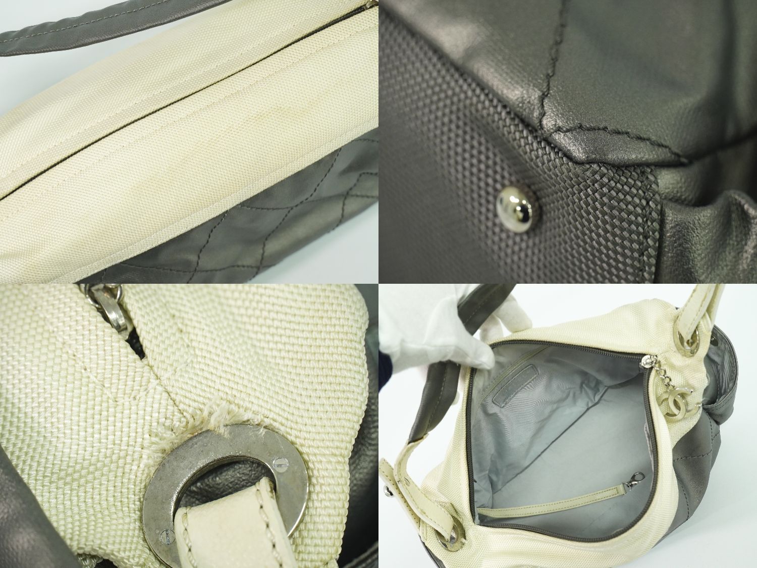 [備考] ストラップ 社外リカラーされておりCHANELにリペアを出すことはできません/ボディ キャンバス 変色・ほつれ・簡易修理跡/ストラップ 変色・接着剤染み/ストラップ バニッシュ ヒビ割れ・ハゲ/外側ポケット 内側 少染み/内側 変色・少汚れ