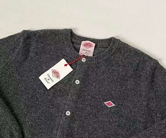 DANTONの赤いダイヤモンドロゴが映える ダークグレーのボタンダウンカーディガンです。