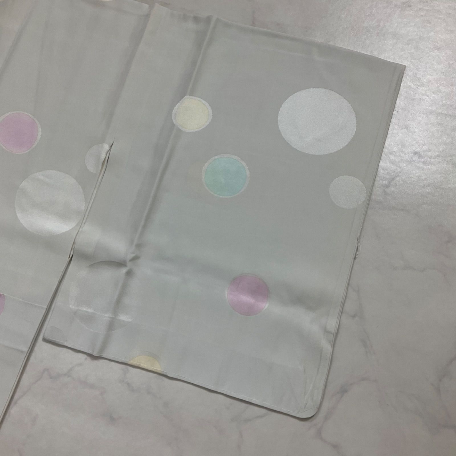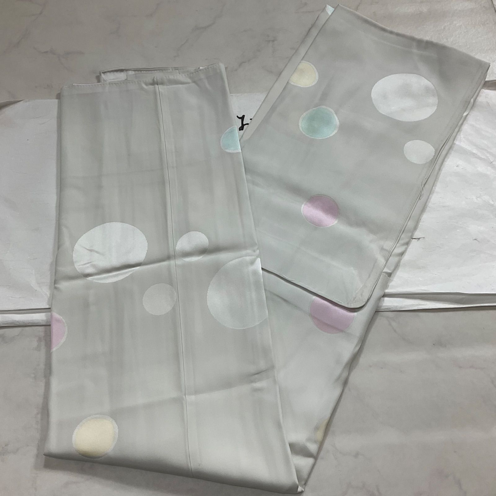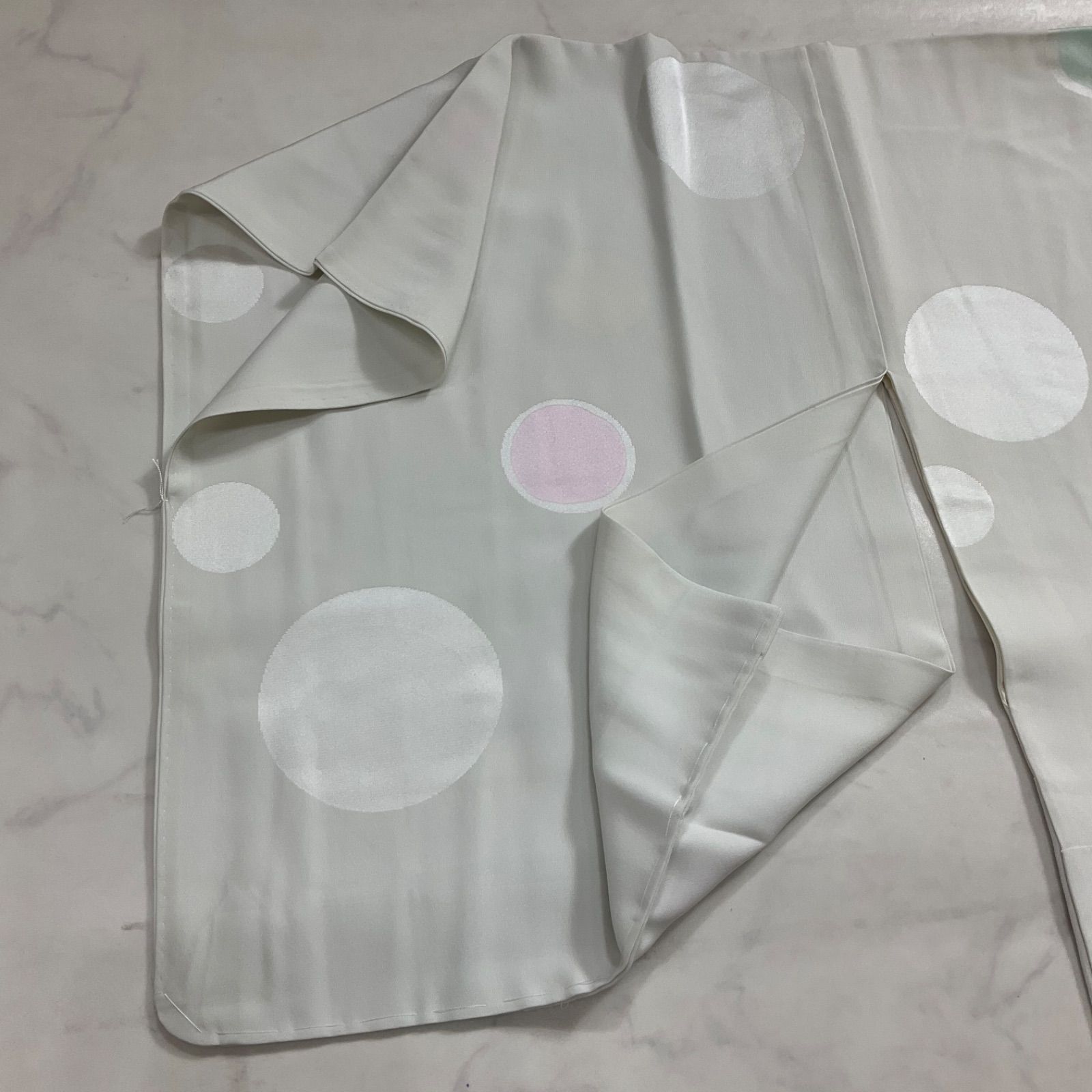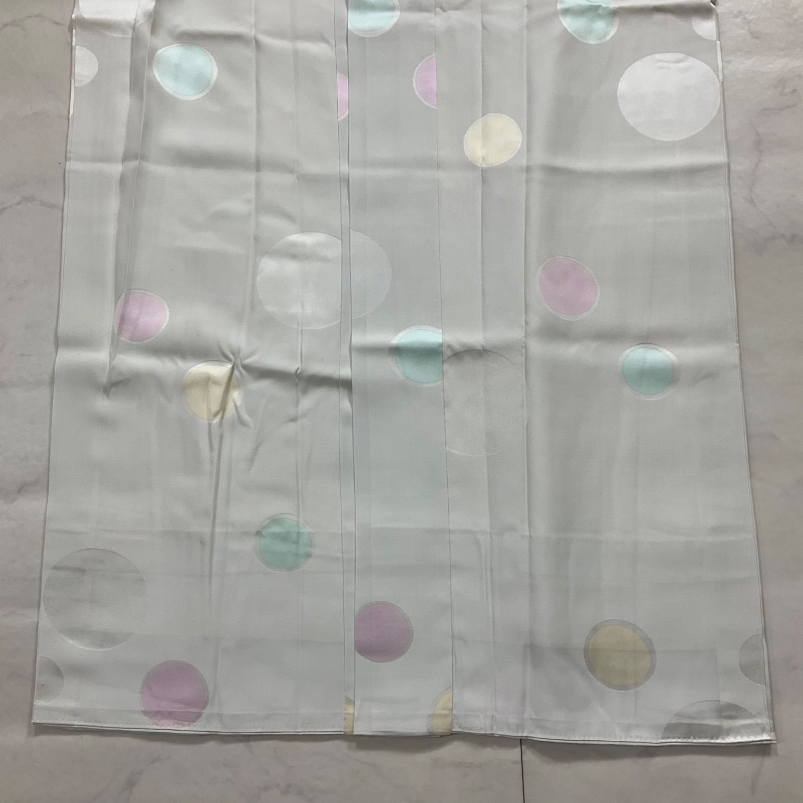 ●状態は大きな使用感なく綺麗な状態ですが、衽の下部の黄色い丸い模様のなかにうっすらとシミがあり、後ろ身頃の腰の上くらいの所には黒い点シミのような物がございますので最後の2枚の写真をご確認くださいませ。