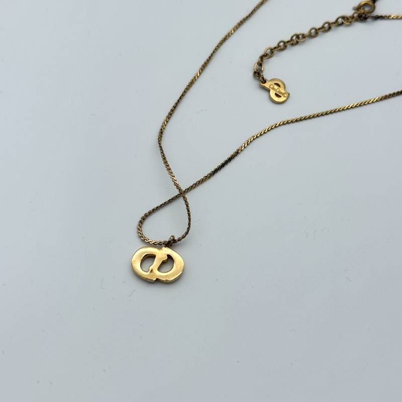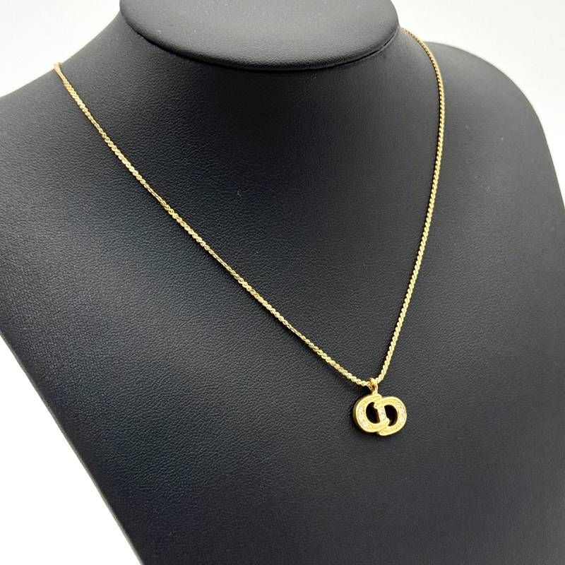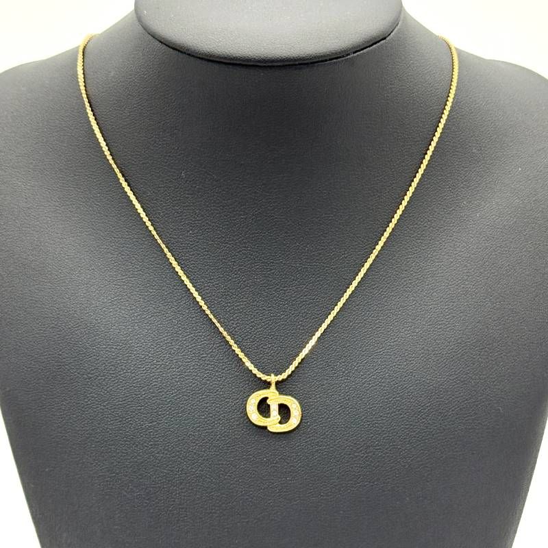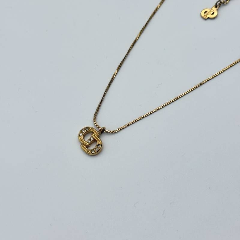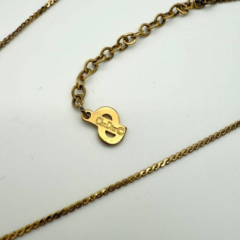 美品 Dior CDロゴ ラインストーン ネックレス ゴールド クリスチャン ディオール Christian Dior ヴィンテージ