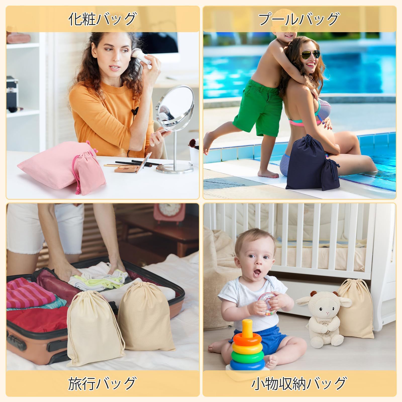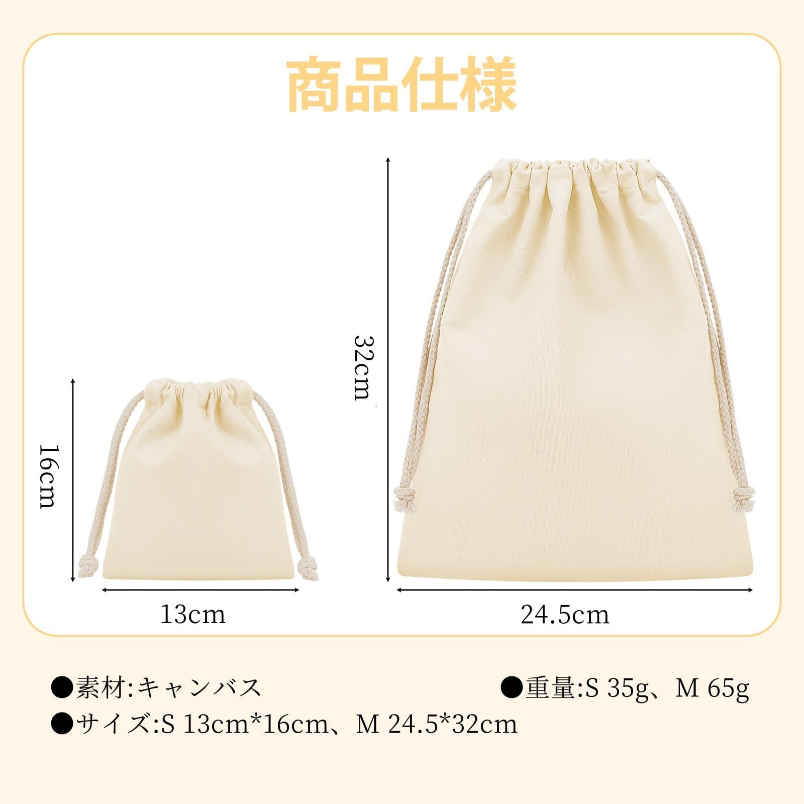[Etercycle] 巾着袋 2枚セット 無地 帆布 2サイズ18色 キャンバス製 お洒落 かわいい インナーバッグ 収納 旅行 着替え袋 巾着 収納ポーチ アクセサリーポーチ 小物入れ