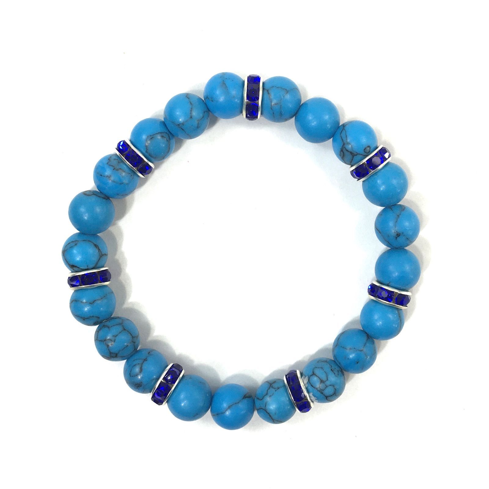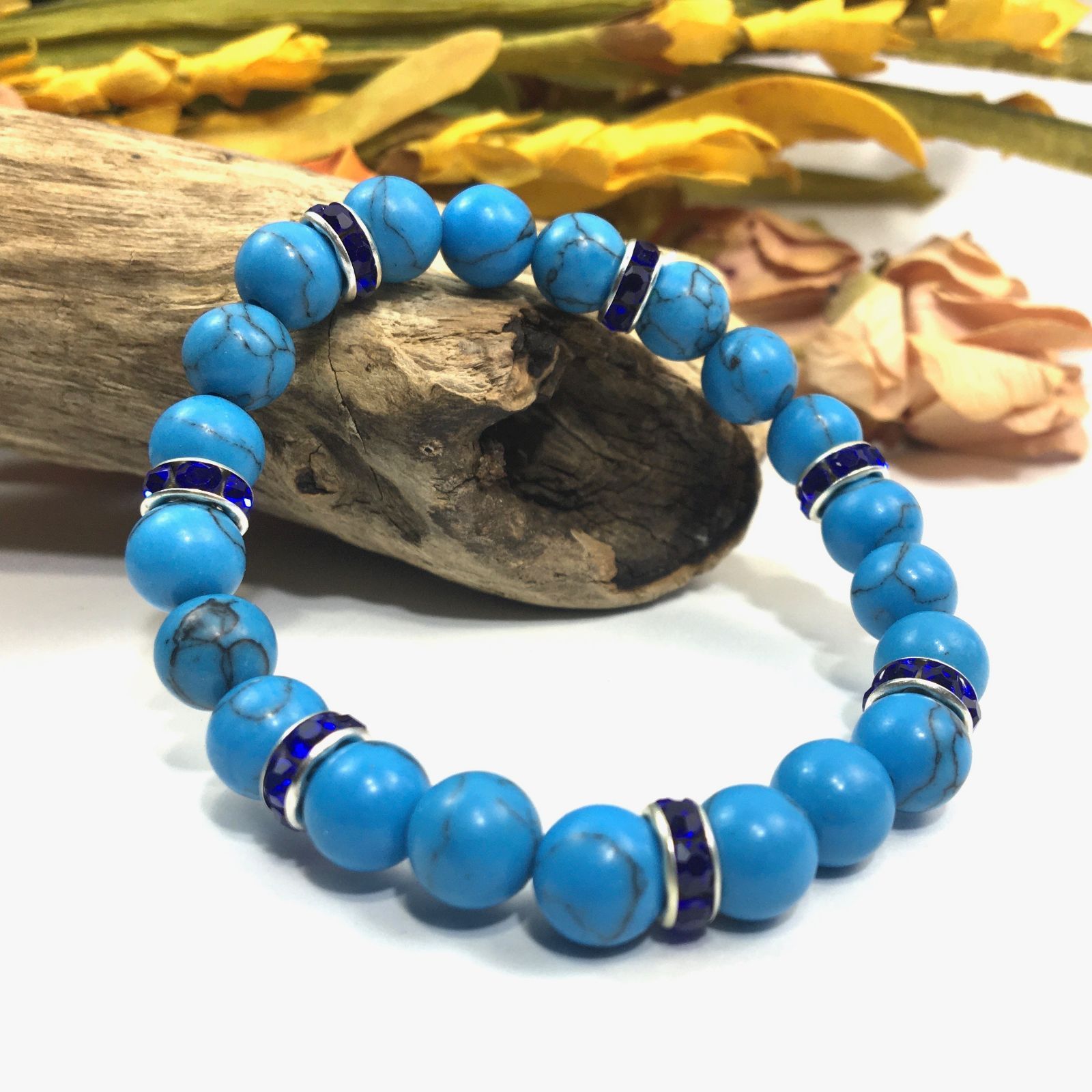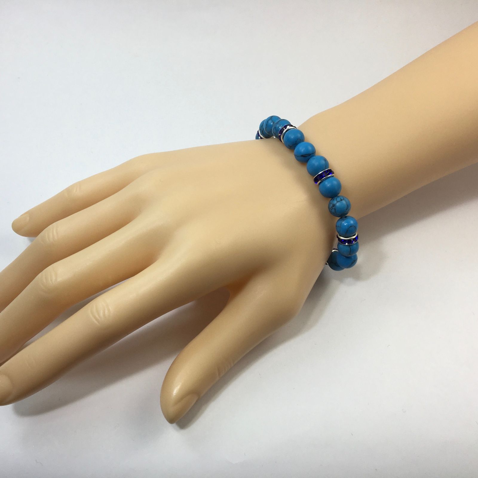 こちらは、8mm玉のターコイズを使ったパワーストーンブレスレットです。シンプルなデザインでどんなコーディネートにも合わせやすいデザインに仕上げています。サイズは内周約15cmです。気になる方は是非この機会にどうぞ。