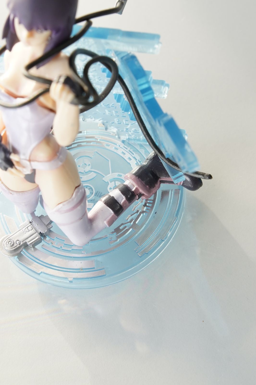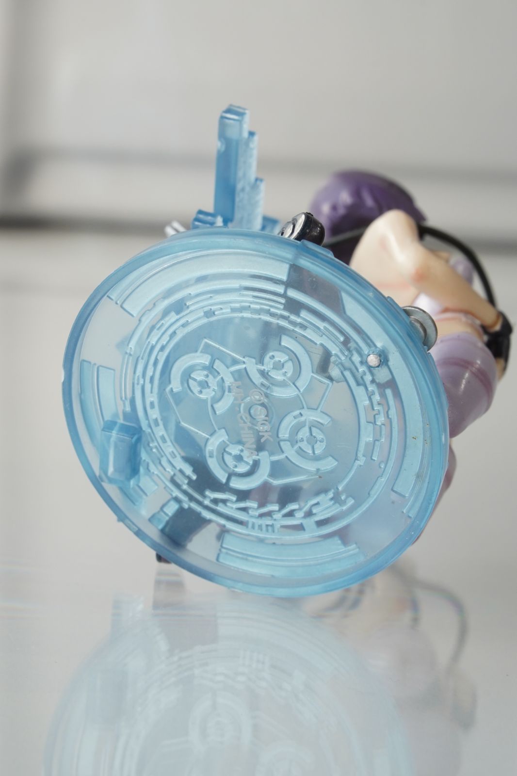 青いクリアパーツの台座を用いた演出が再現されたトレーディングフィギュアです。