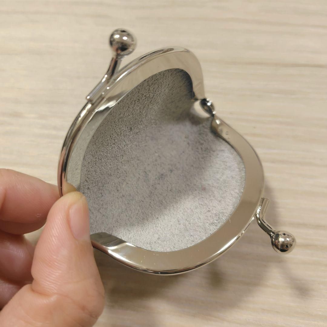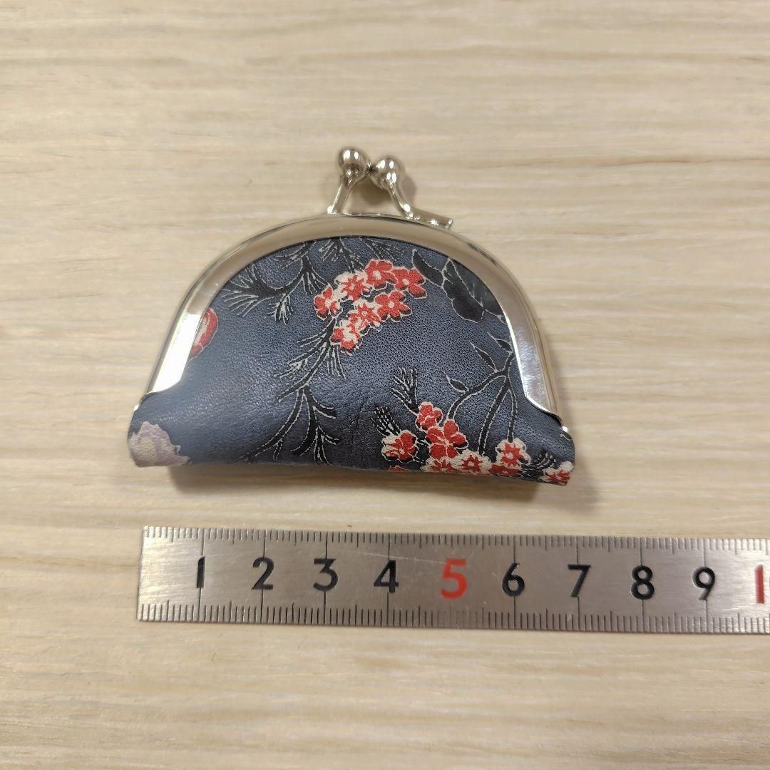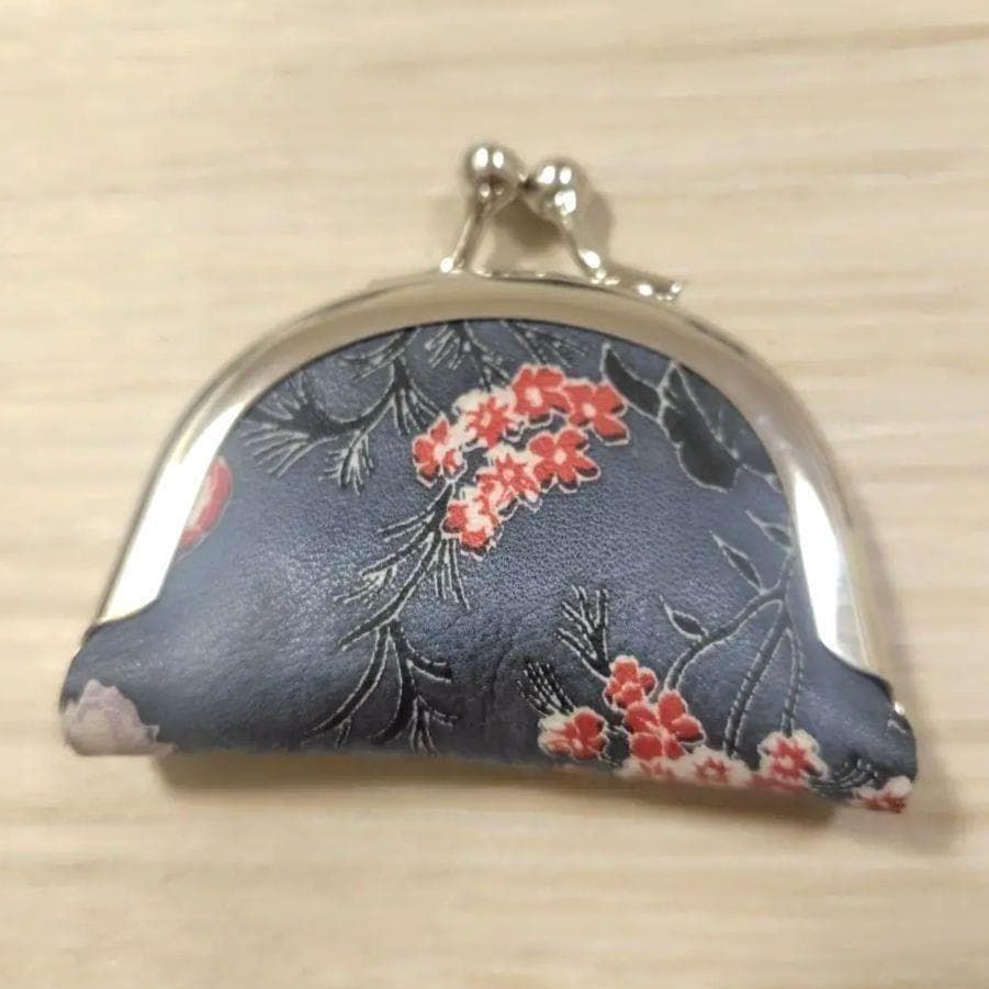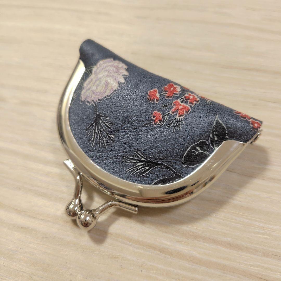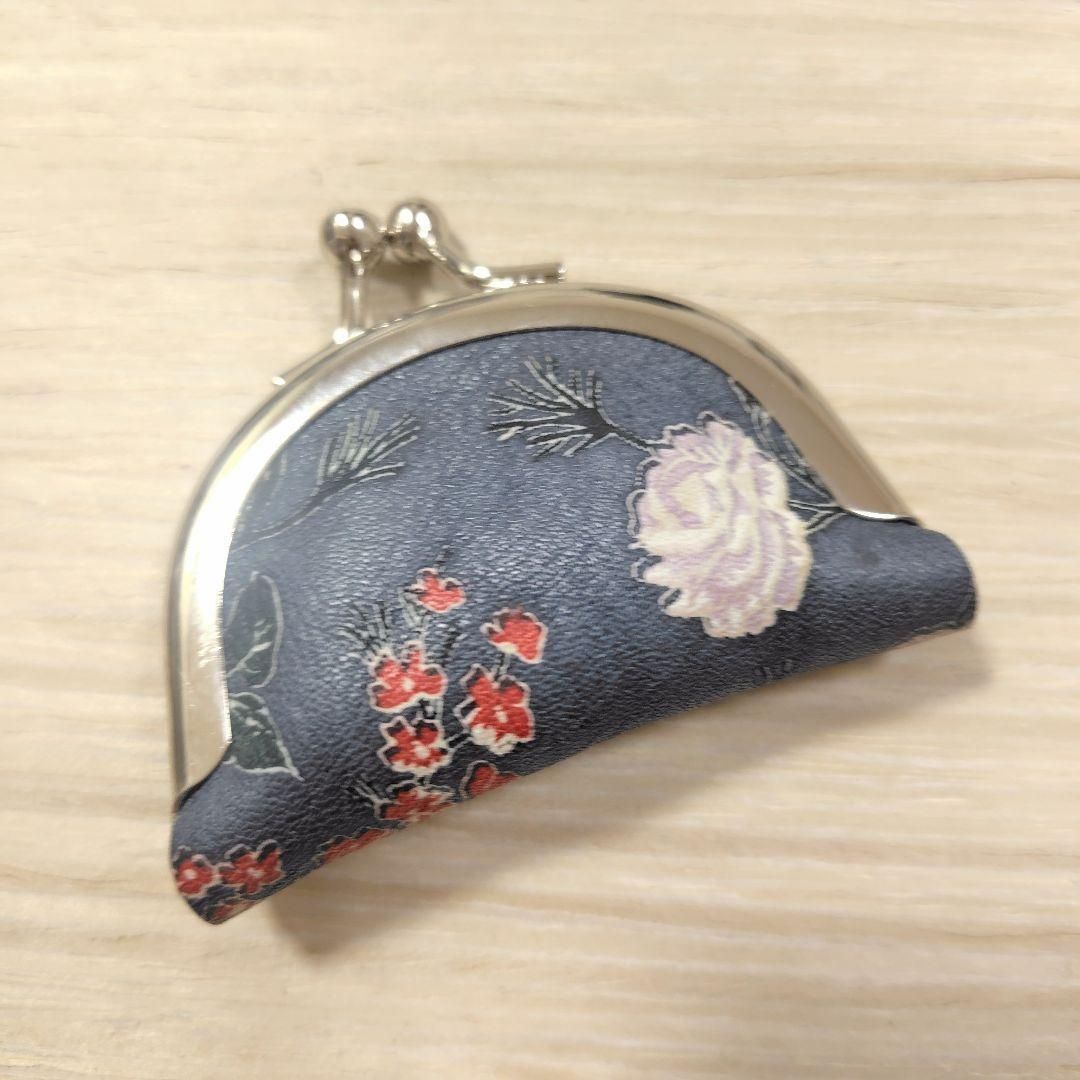 ミニ がま口 半円 赤白花 小さい 財布 革 レザー コインケース
