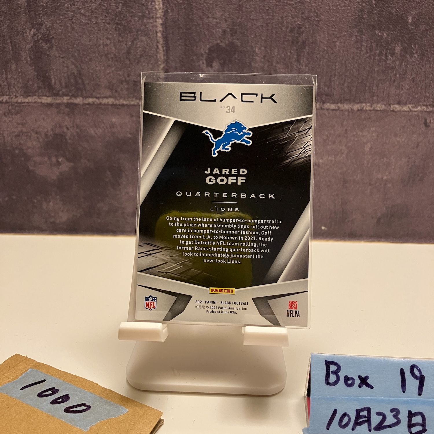 2021 Panini Black Jared Goff 15/75 Detroit Lions Quarterback