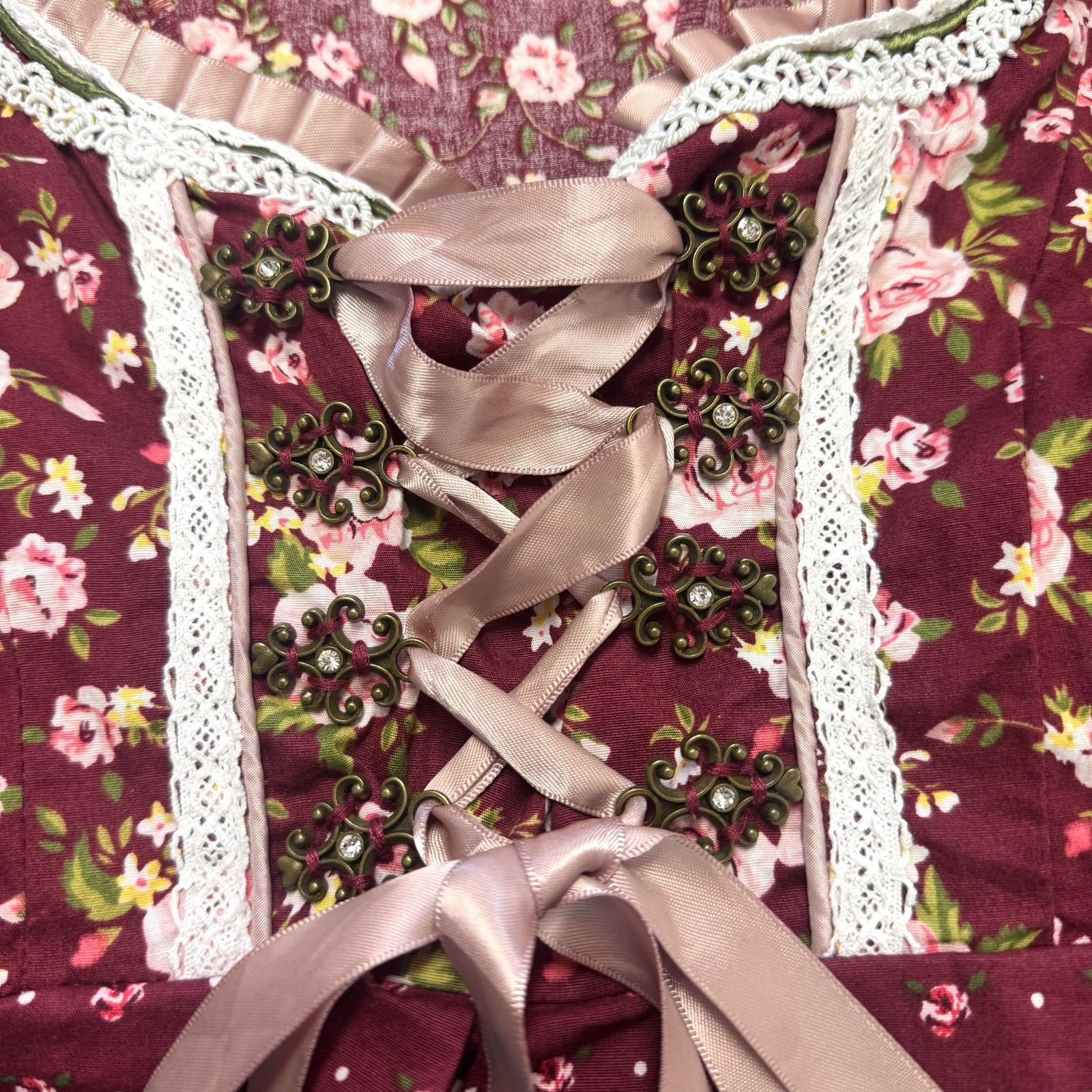 胸元のレースアップが印象的な、コルセット風デザインのチロルワンピース。