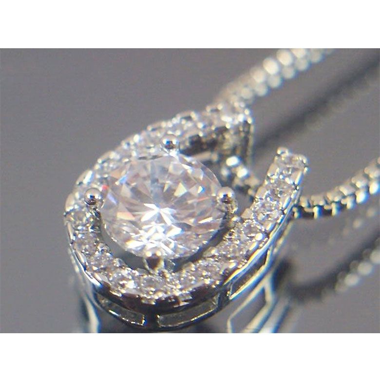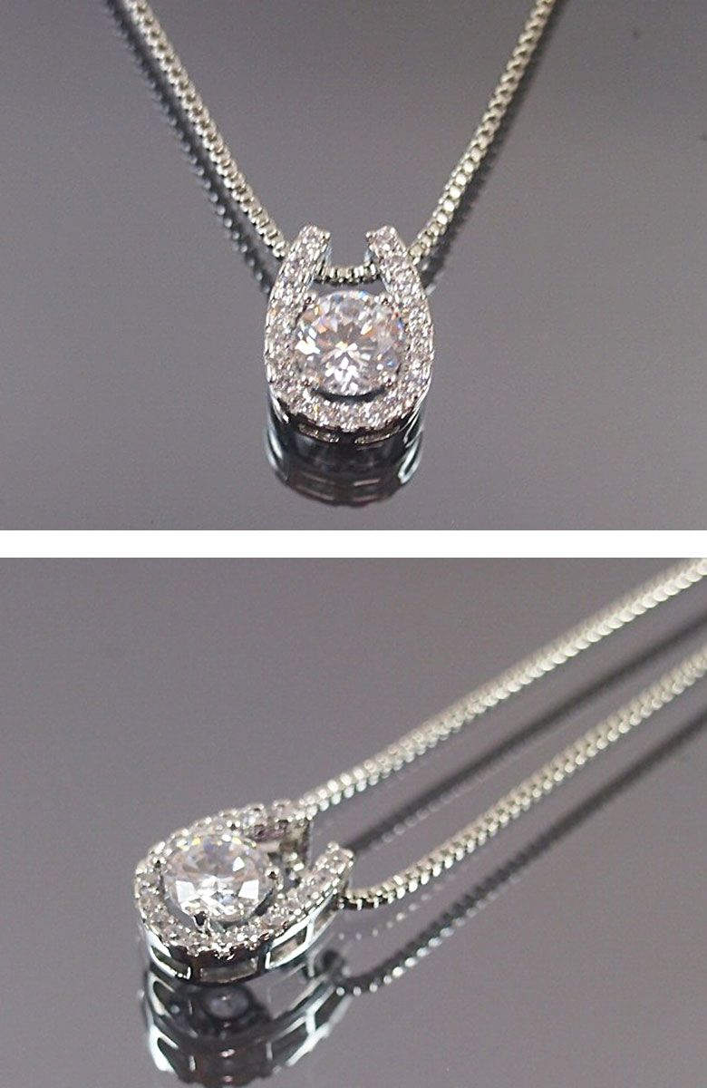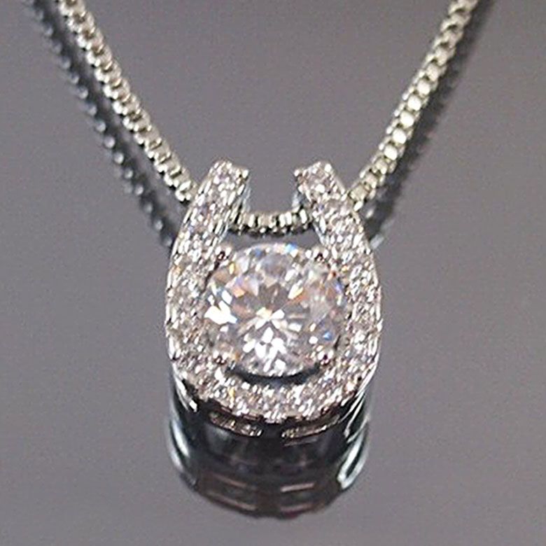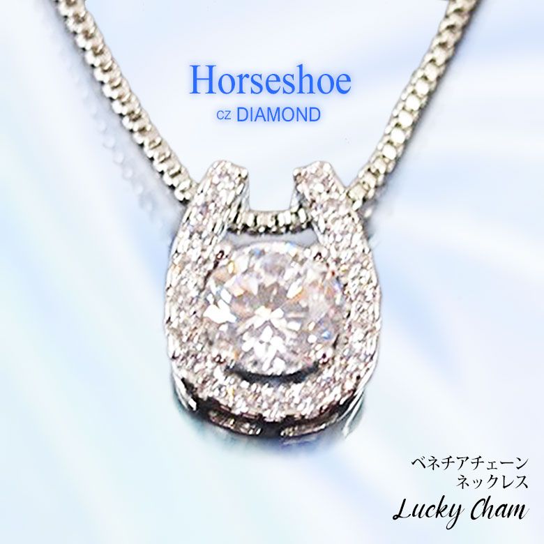 レディース ジュエリーCZダイヤ使用 幸運の馬蹄モチーフネックレス