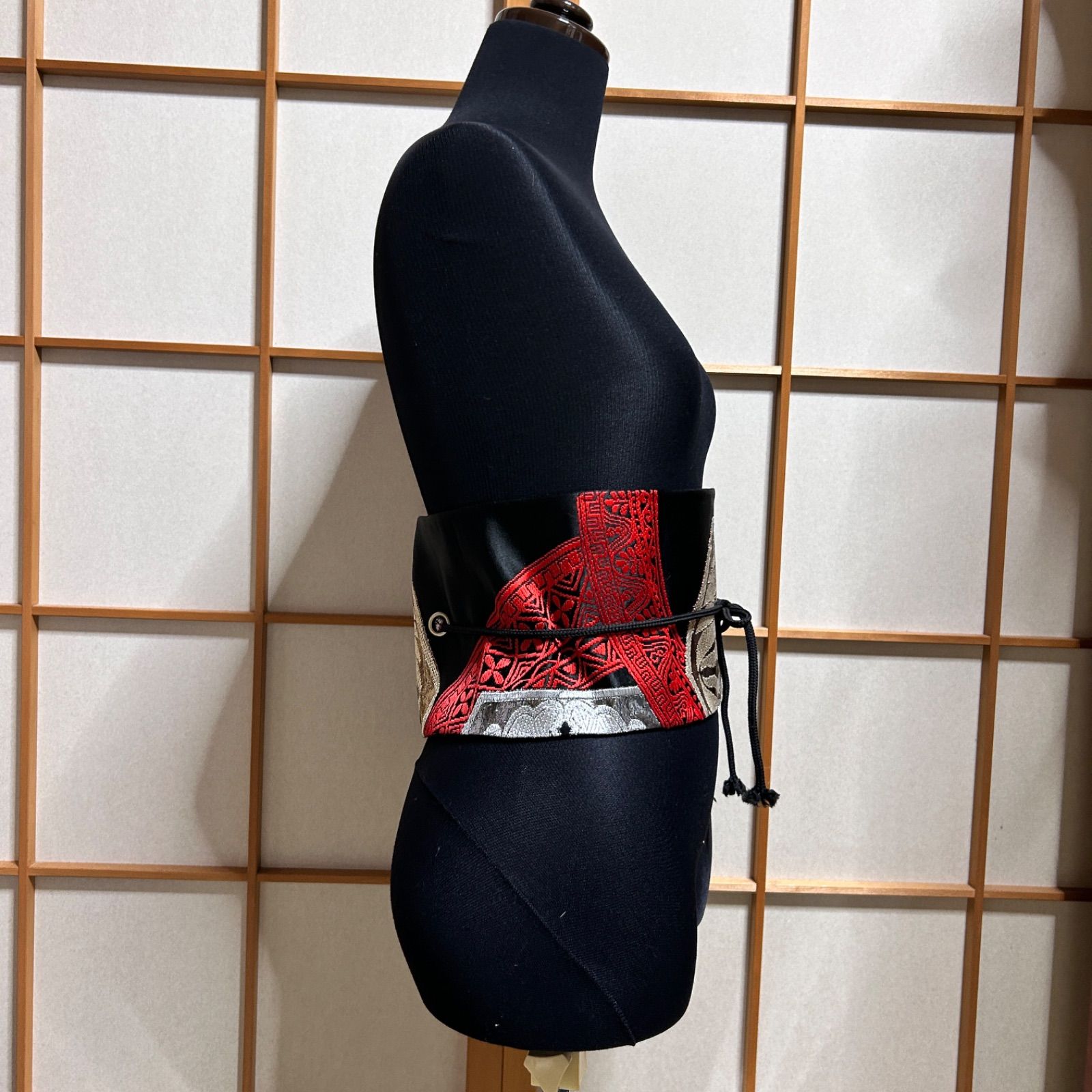 着物帯をリメイクした、リバーシブル仕様の帯ベルトです。