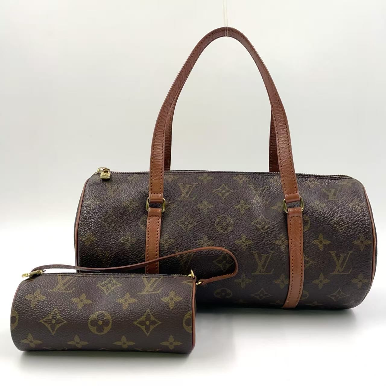 【商品名】LOUIS VUITTON パピヨン30 モノグラム モノグラム 旧型 レザー×PVC ブラウン ハンドバッグ ゴールド M51365