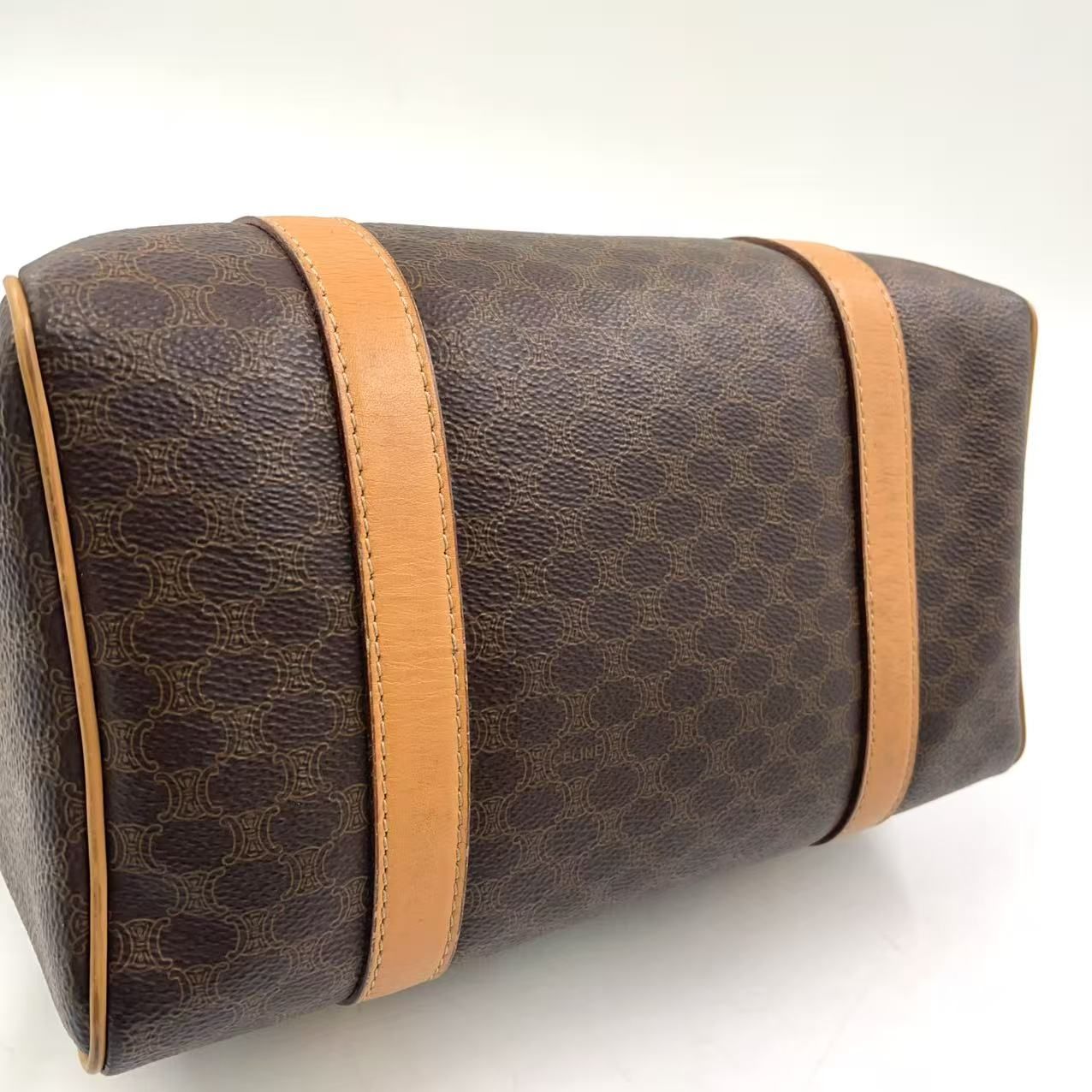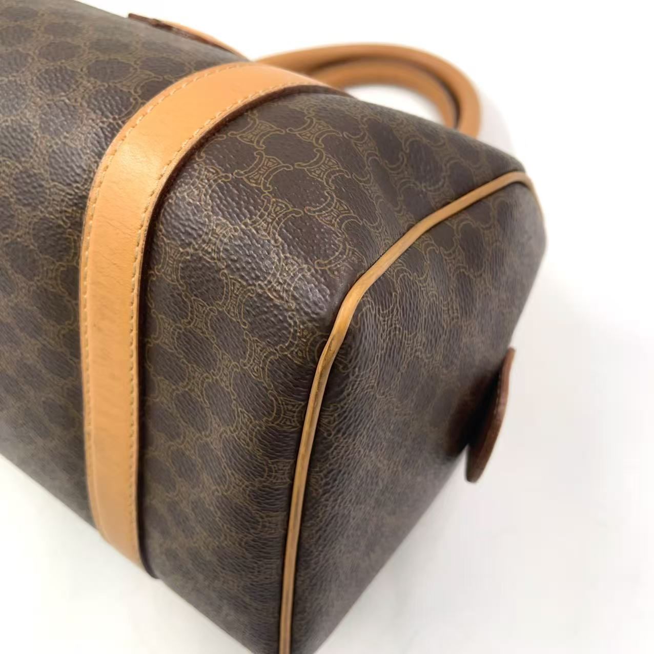 【商品名】CELINE マカダム柄 ミニ レザー×PVC ブラウン×ライトブラウン ボストンバッグ ゴールド