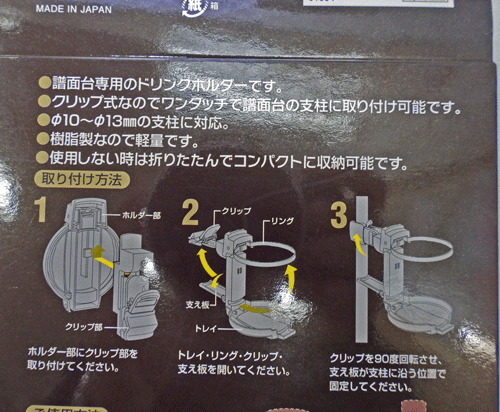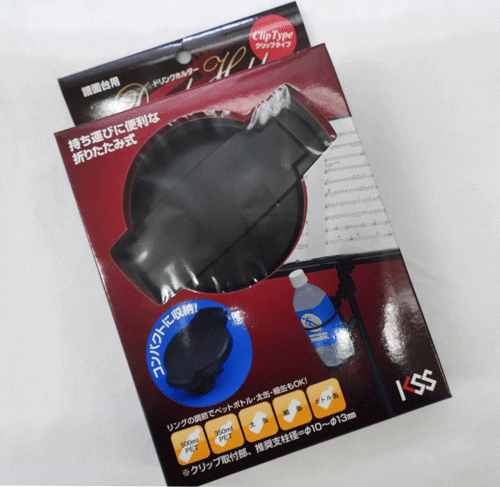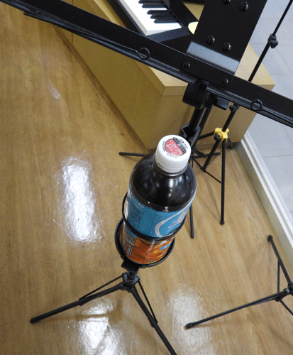 折りたたみ譜面台に簡単に取り付けることができるドリンクホルダーがこちら!真夏の水分補給はもちろん。暖房のきいた真冬の練習中にも、こまめな水分補給は、楽器奏者にとっても大切!便利なドリンクホルダーおひとついかがでしょうか?