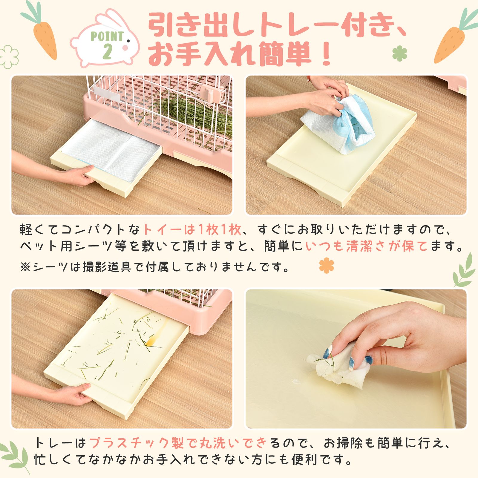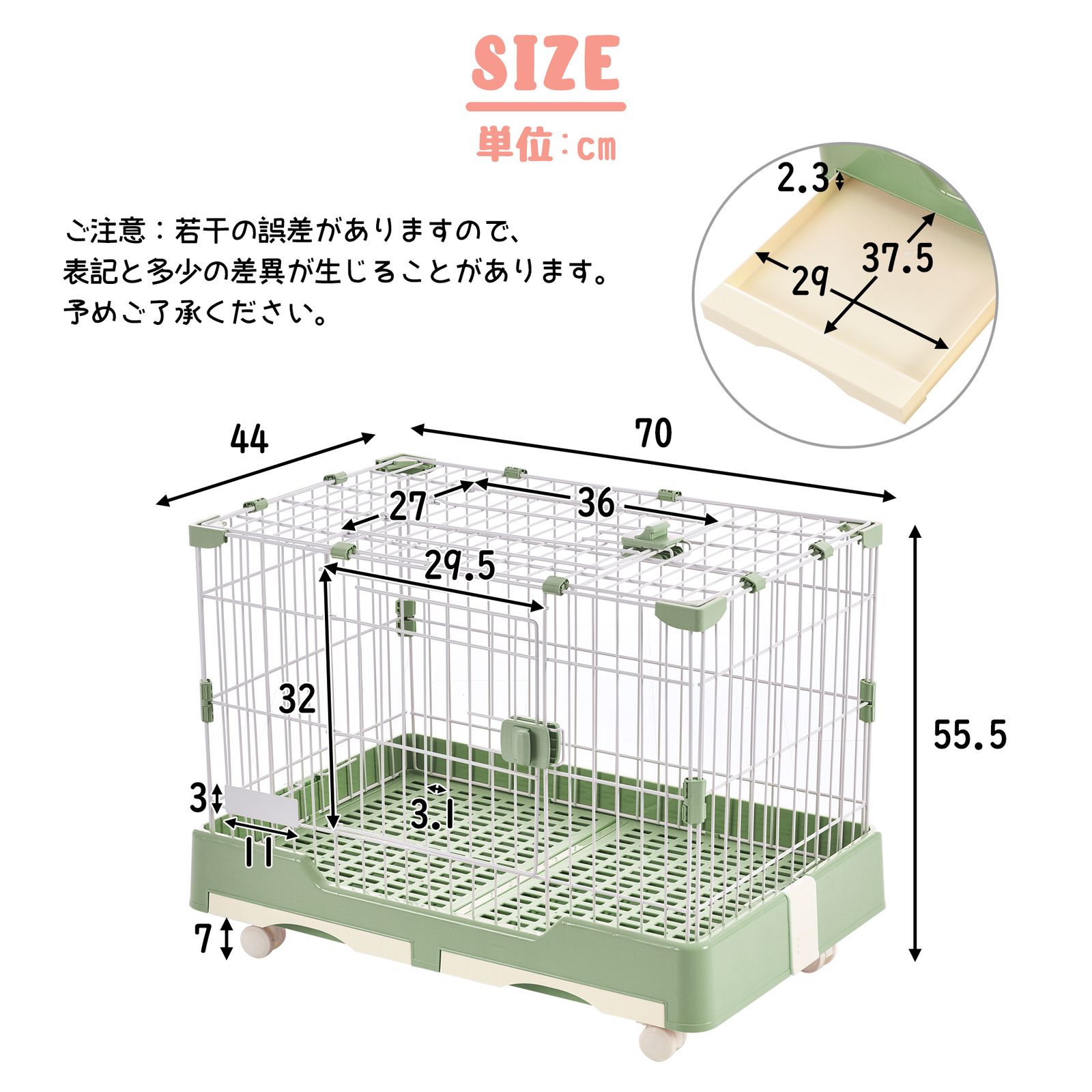 【十分なスペース】うさぎ・犬・猫が入るだけではなく牧草などさまざまなものも置くことが可能ですので、窮屈にならないレイアウトを考えて十分なスペースが確保できるケージです。