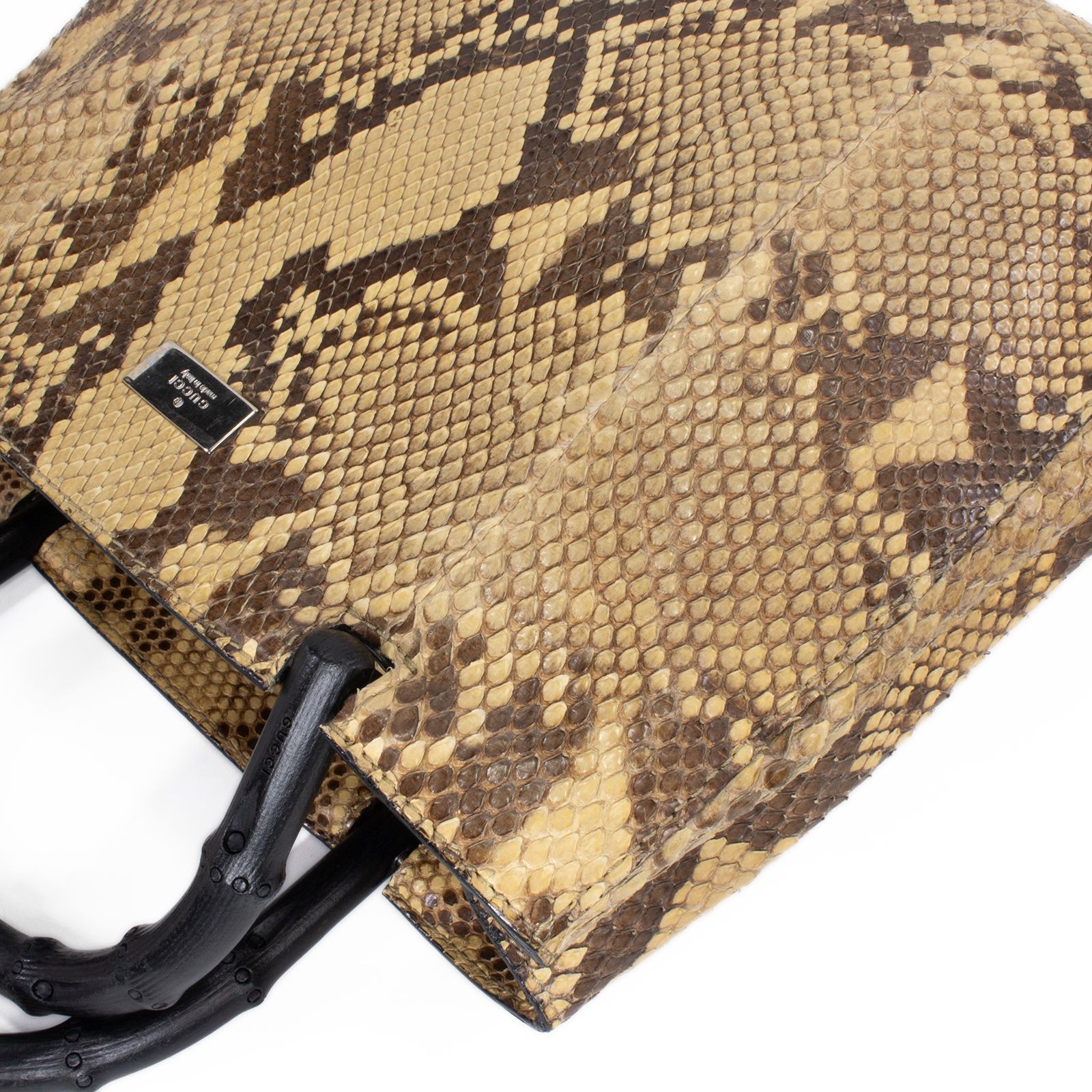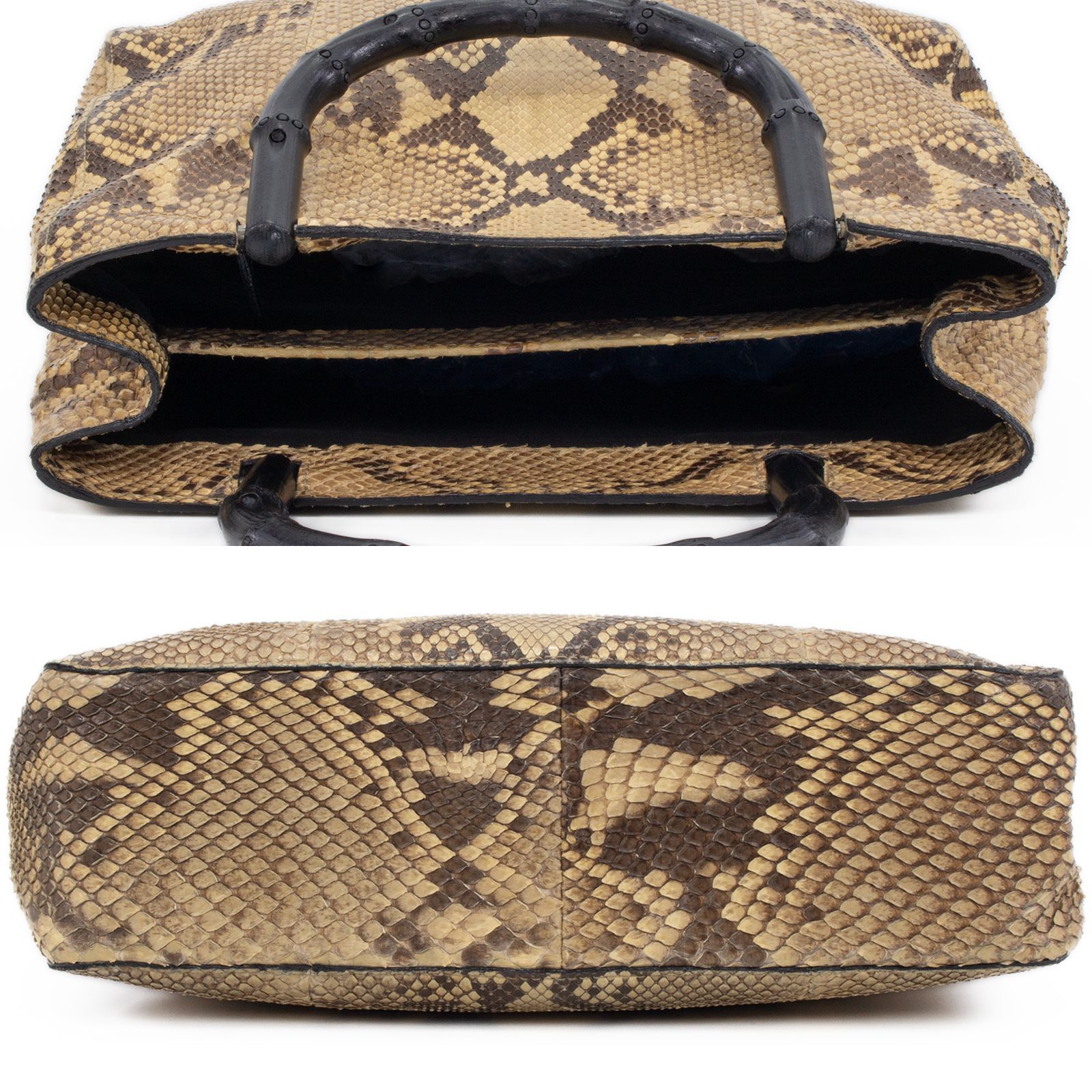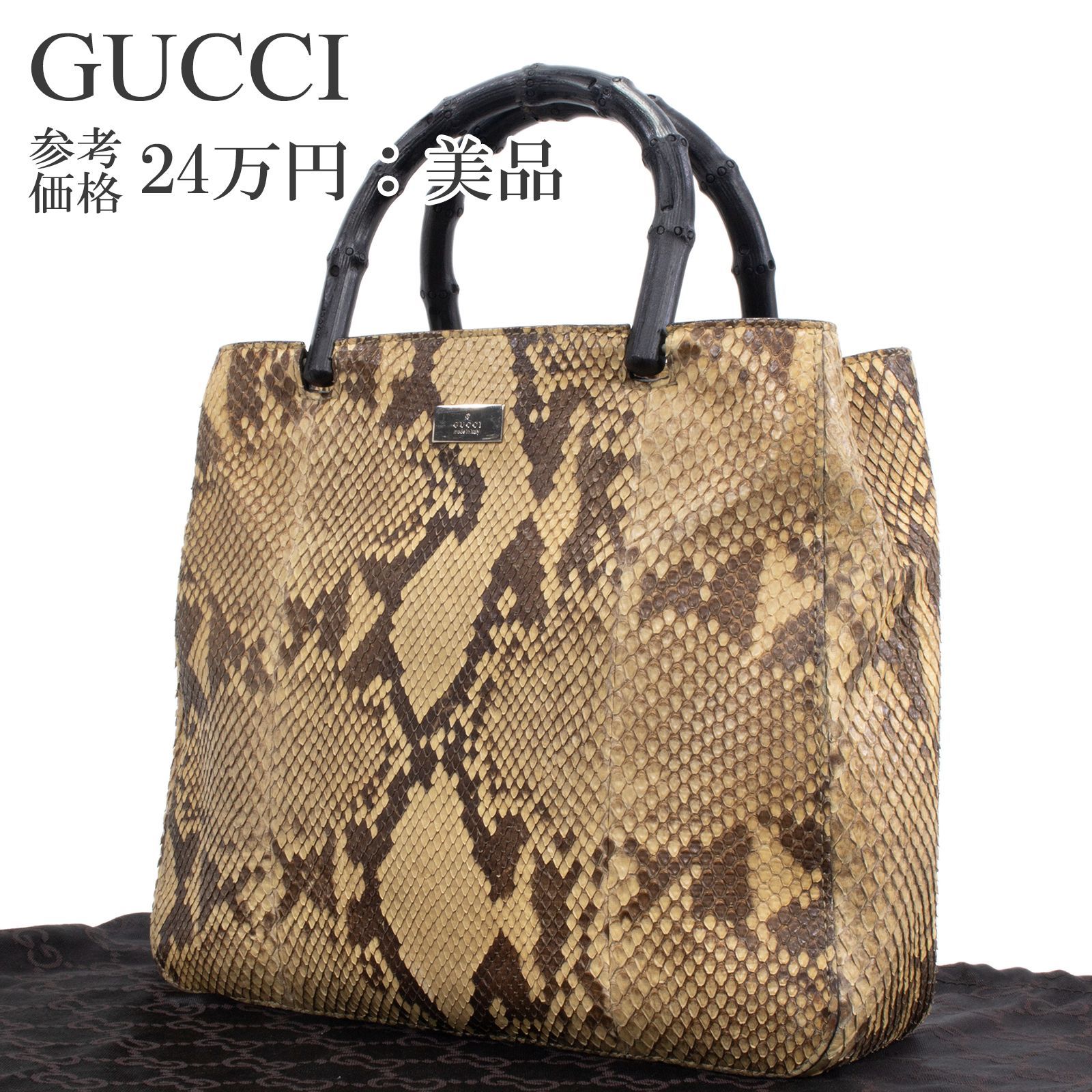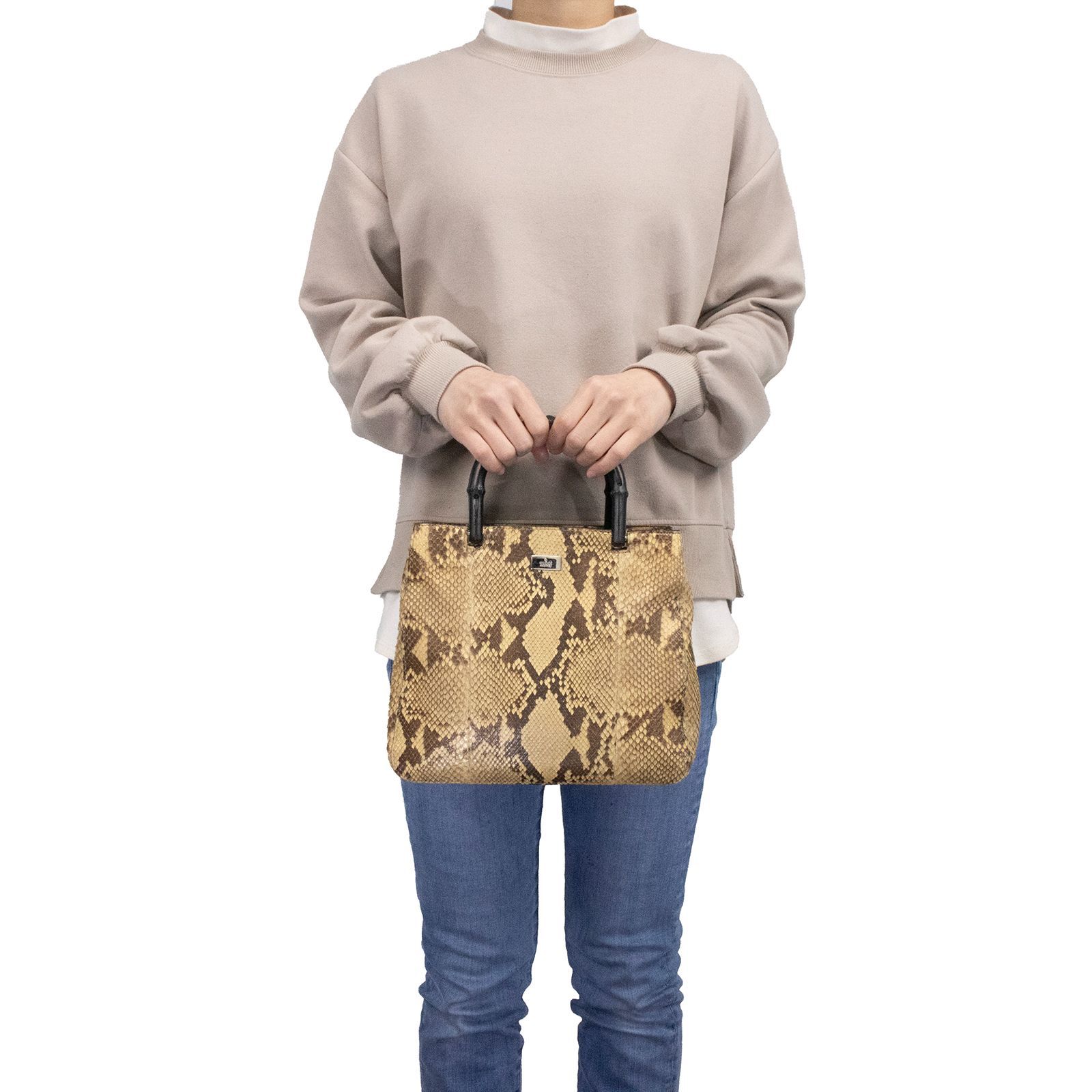 こちらは、希少性の高いパイソン素材を贅沢に使用し、周囲を魅了するような、グッチのバンブー・ハンドバッグでございます。