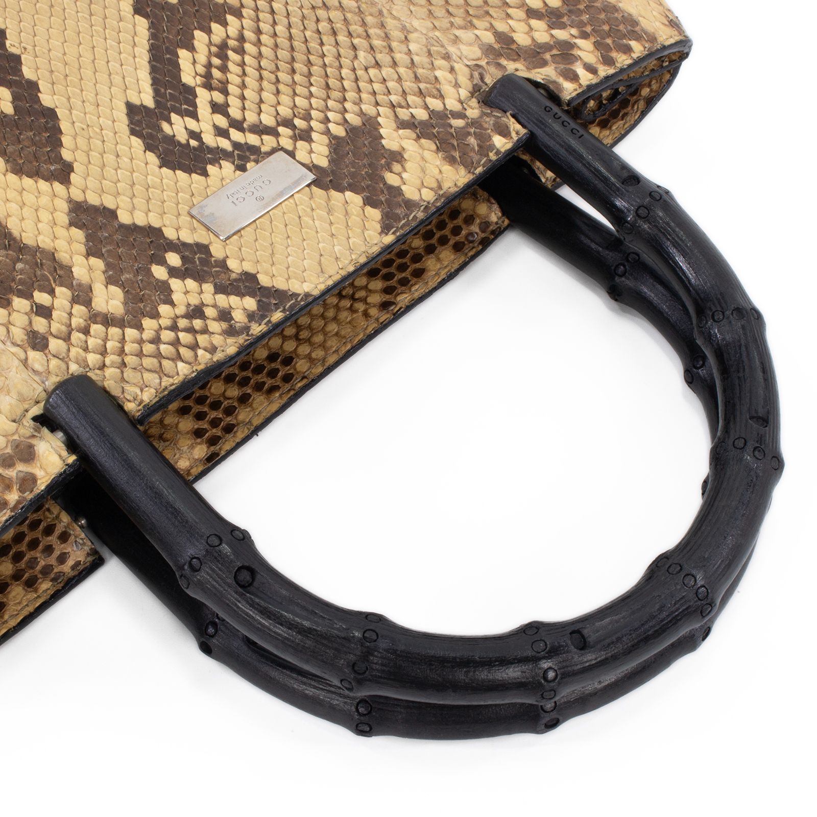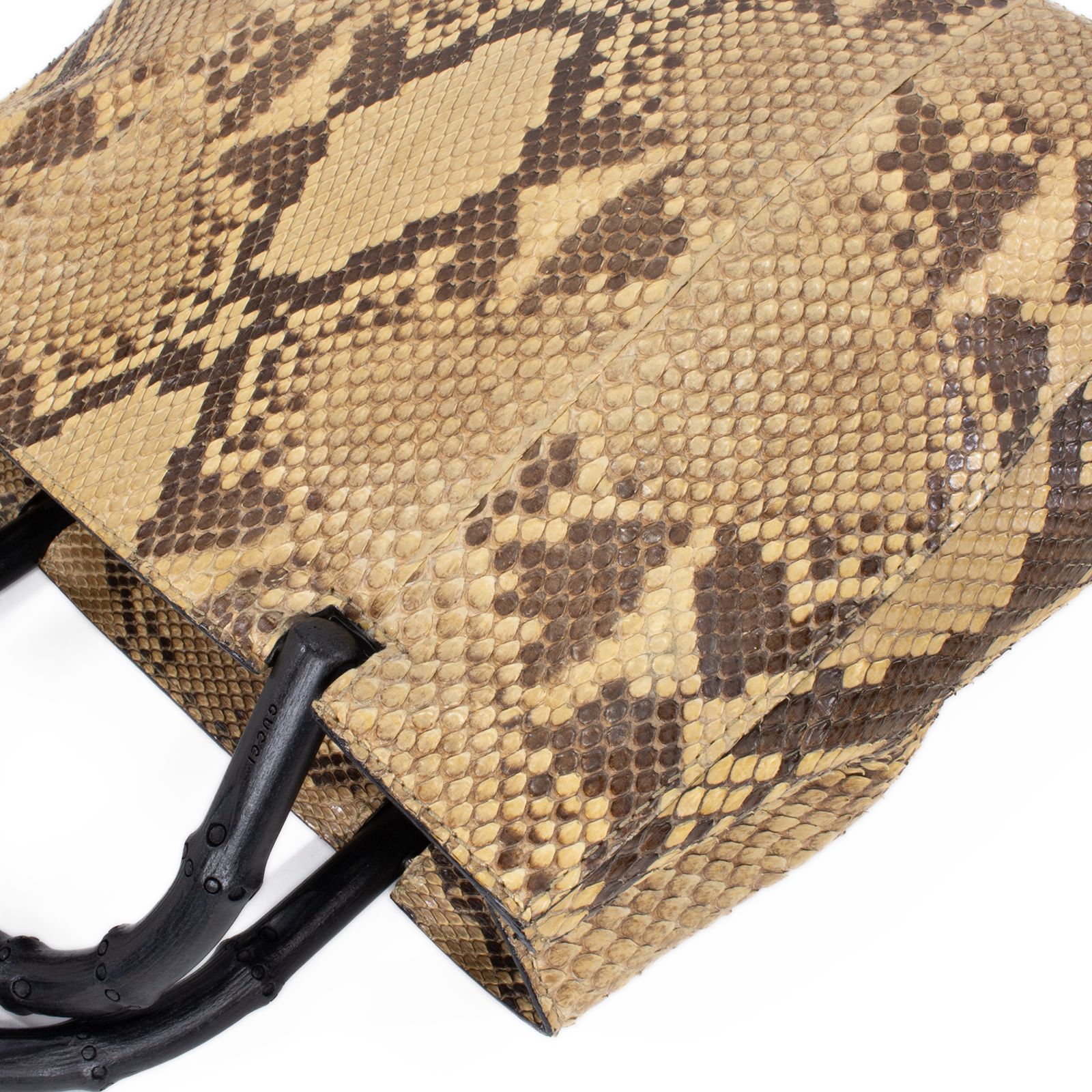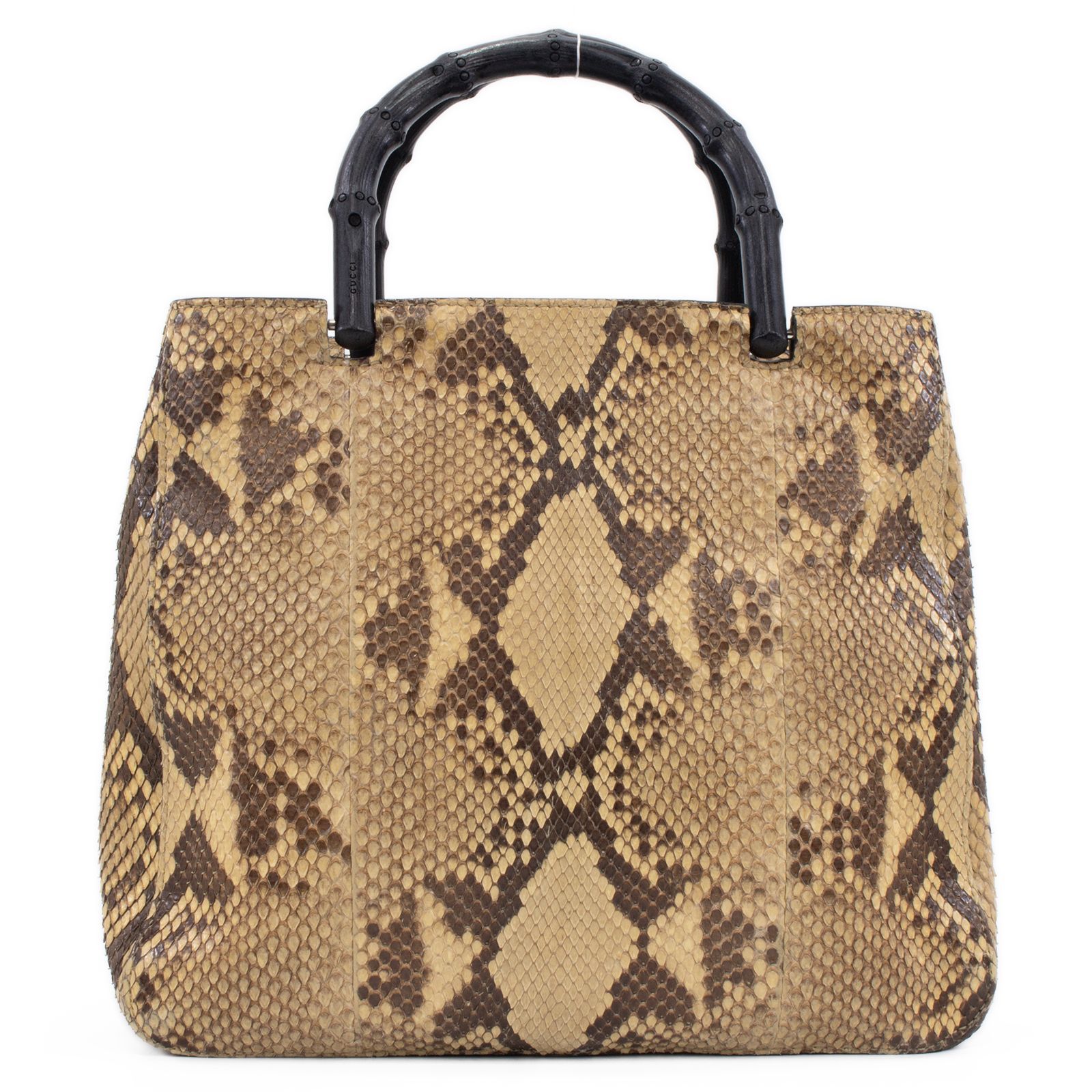 こちらは、希少性の高いパイソン素材を贅沢に使用し、周囲を魅了するような、グッチのバンブー・ハンドバッグでございます。