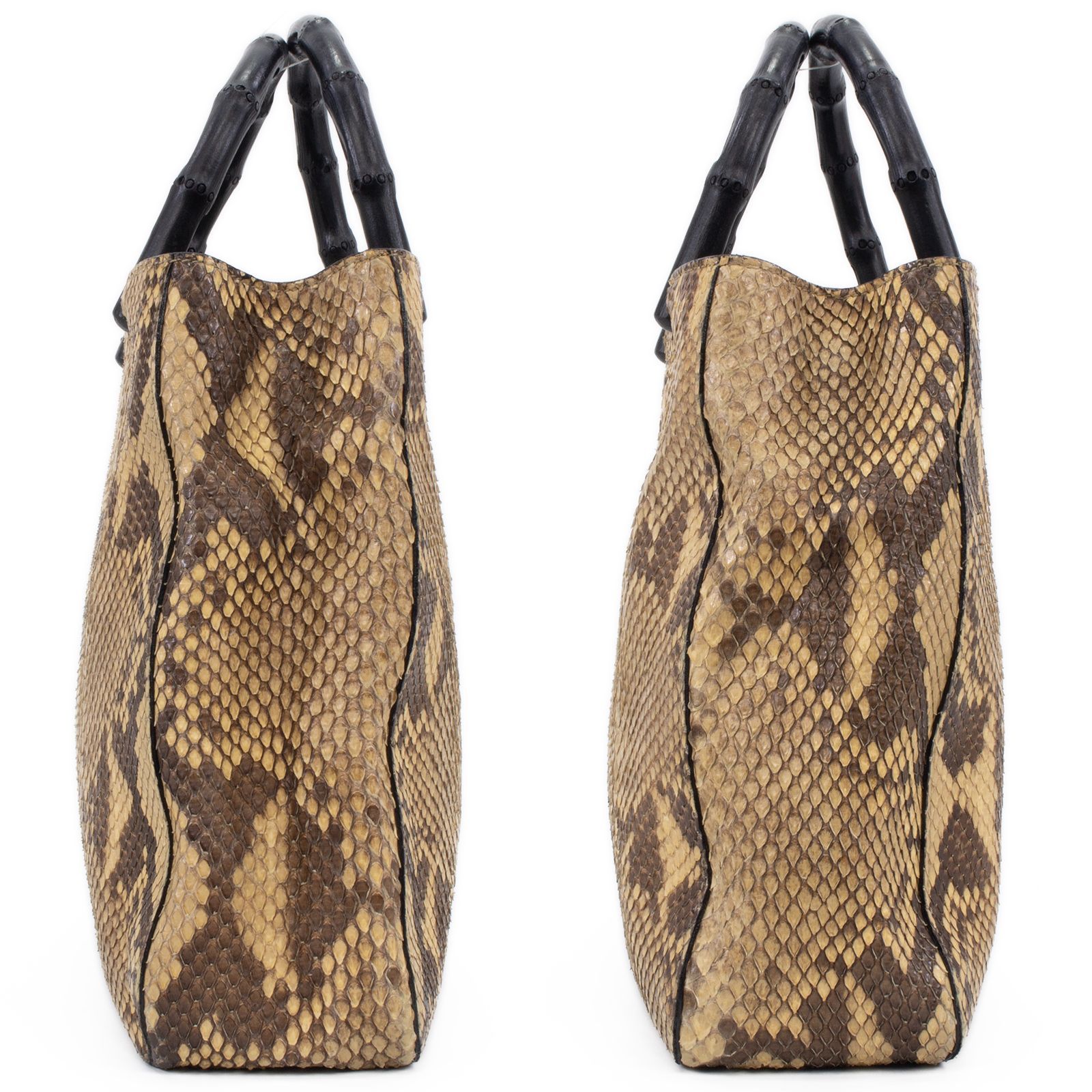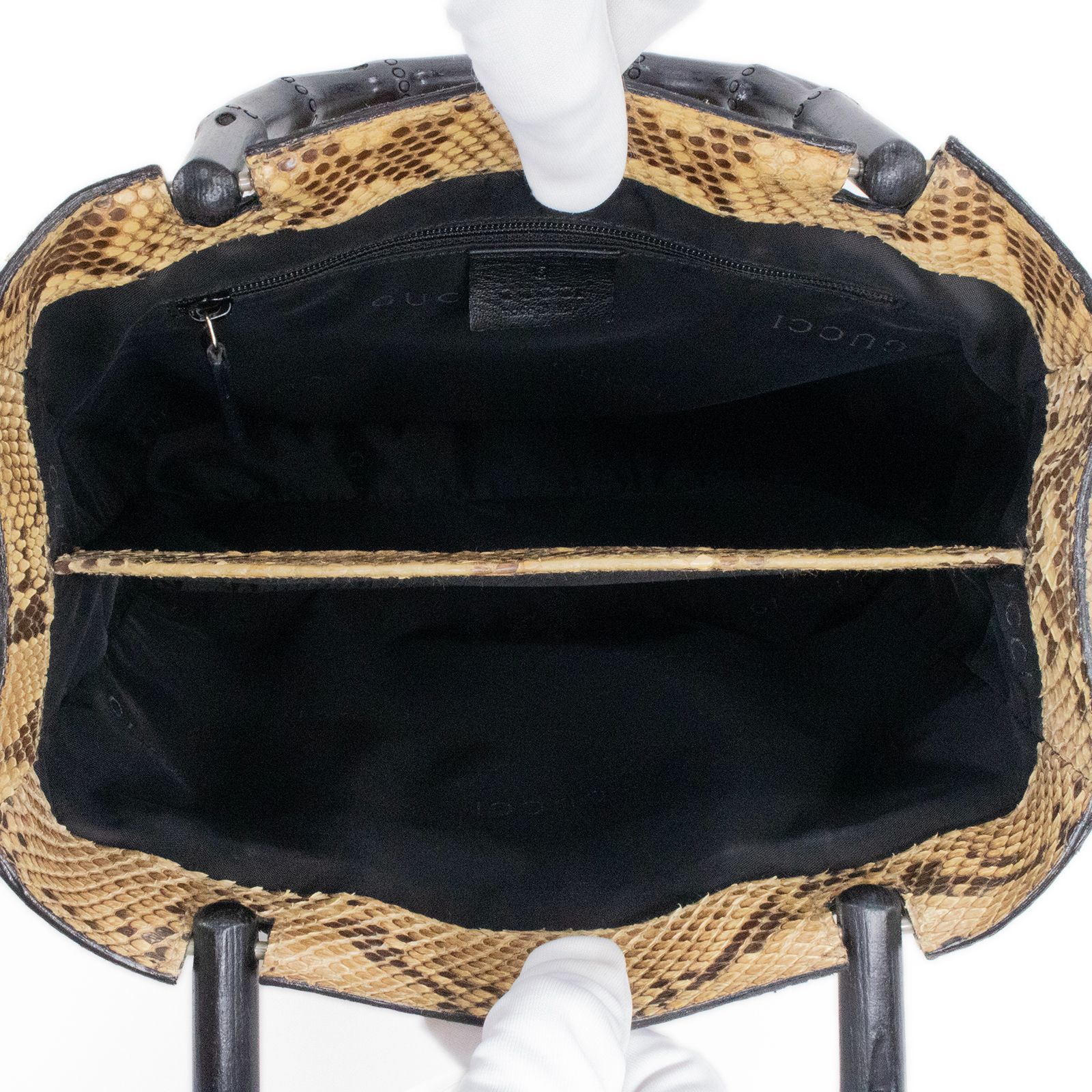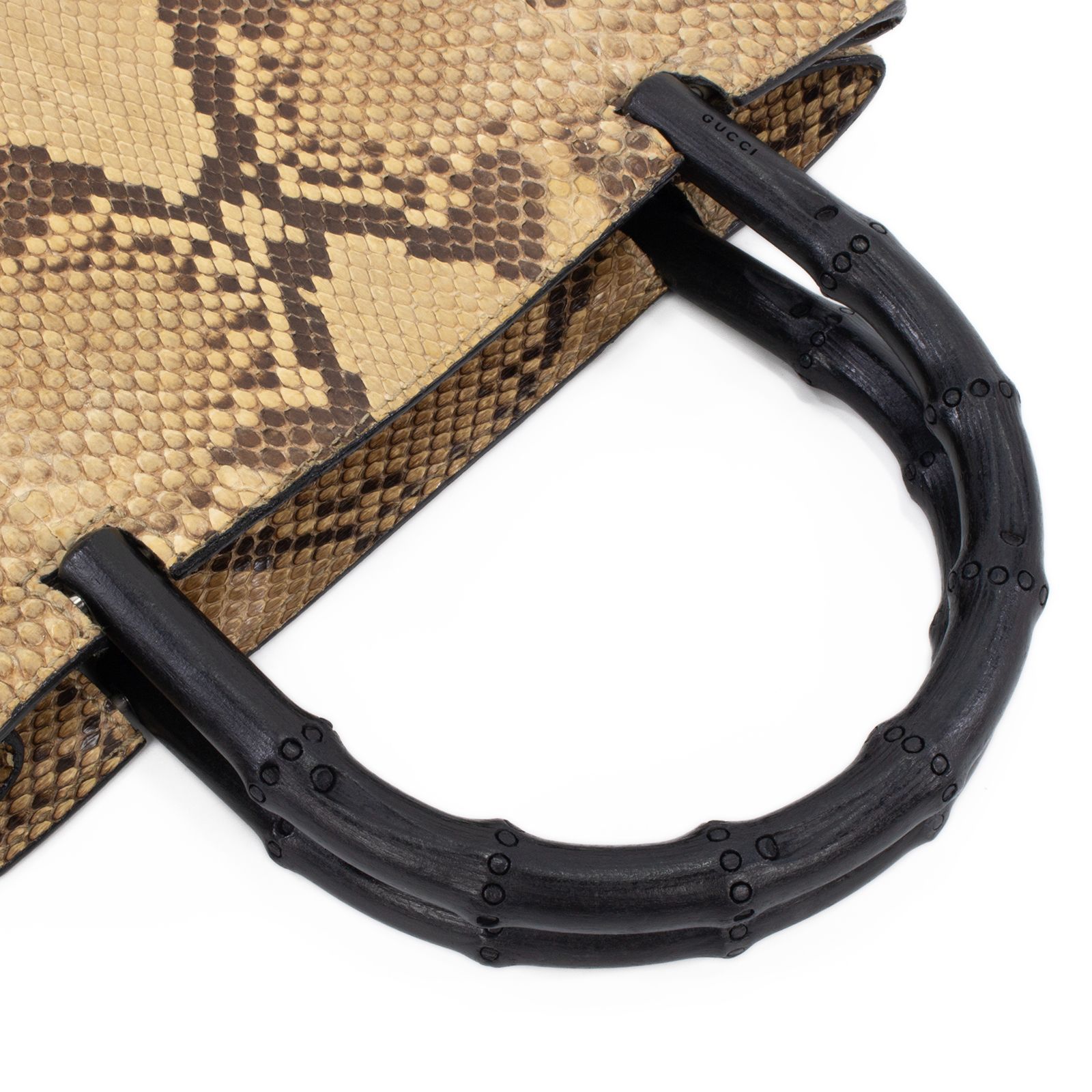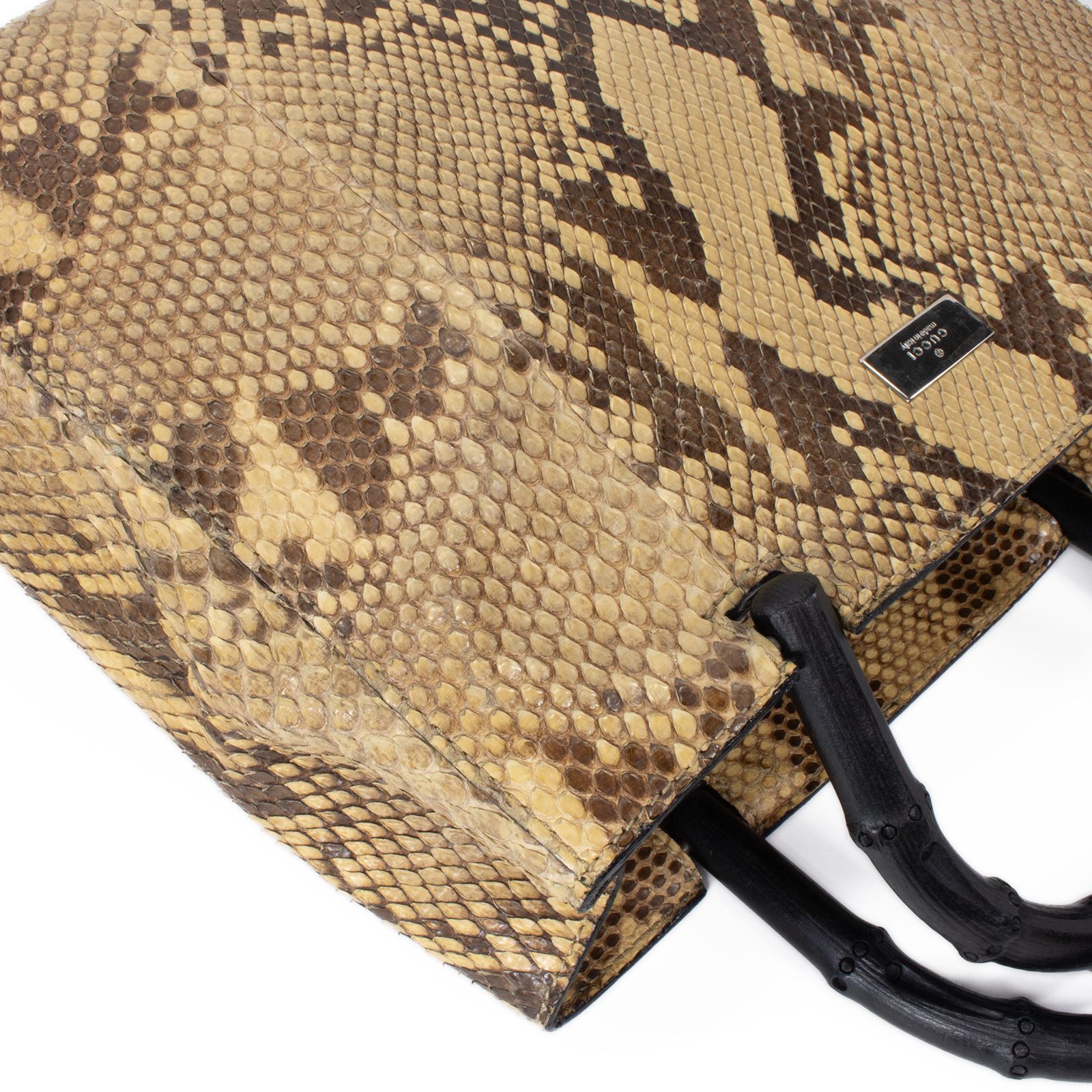 こちらは、希少性の高いパイソン素材を贅沢に使用し、周囲を魅了するような、グッチのバンブー・ハンドバッグでございます。