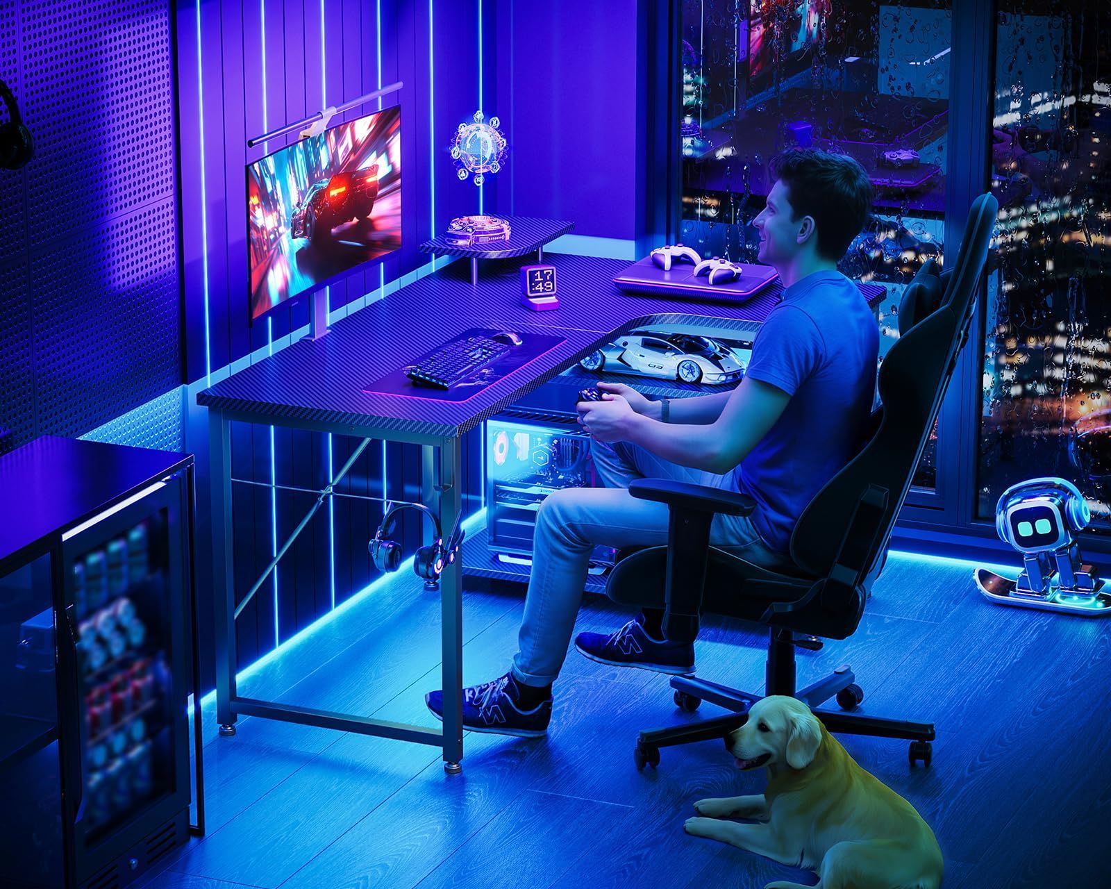 【ゲームと仕事両立】L字ゲーミングデスクは実用性が高く、ゲームプレイ、在宅勤務、書斎机、勉強机など様々なシーンで大活躍!モニター台を利用して目線をあげることで、作業時の姿勢を改善し、テレワークが快適になり、作業効率も格段に上がります。