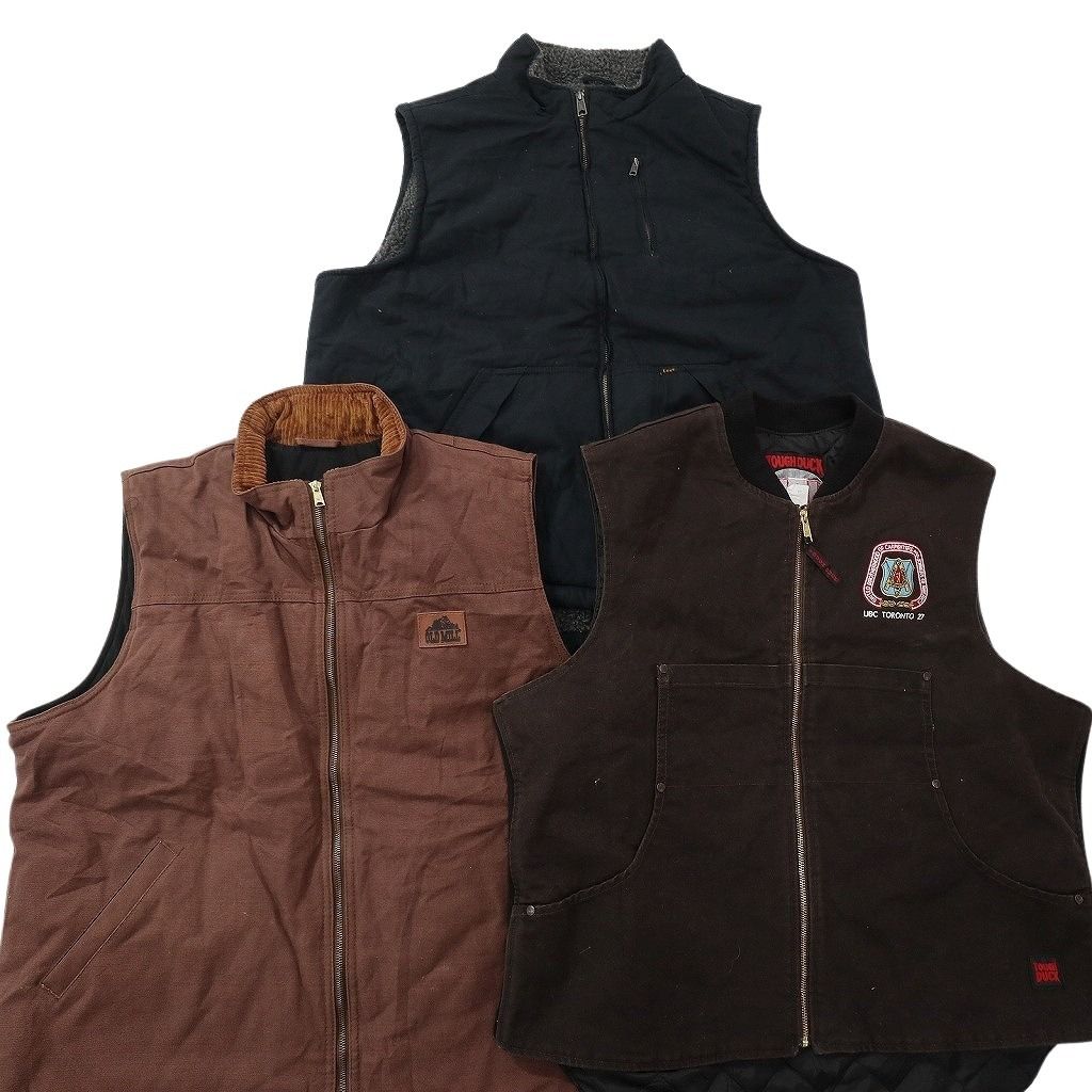 古着卸 まとめ売り ダック地 ベスト ジャケット 3枚セット (メンズ XL ) Lee 裏地ボア スタンドカラー 中古 古着 ND1378