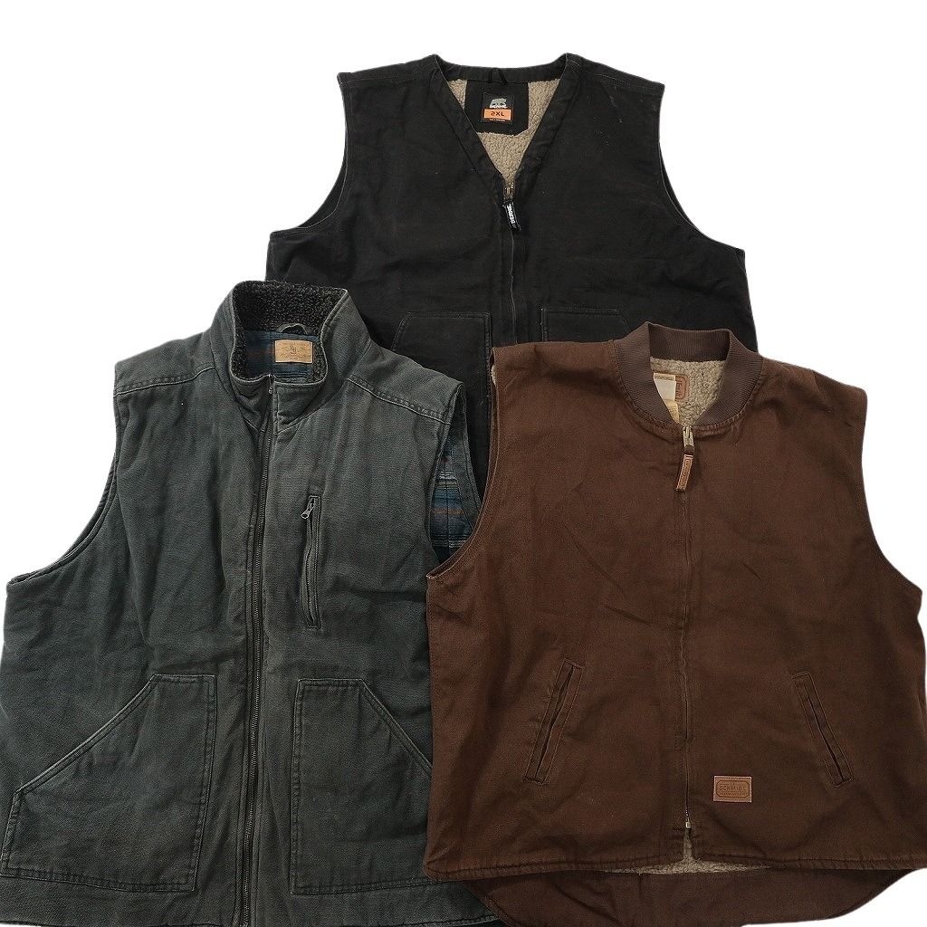 古着卸 まとめ売り ダック地 ベスト ジャケット 3枚セット (メンズ 2XL ) 裏地ボア スタンドカラー ブラウン 中古 古着 ND1376