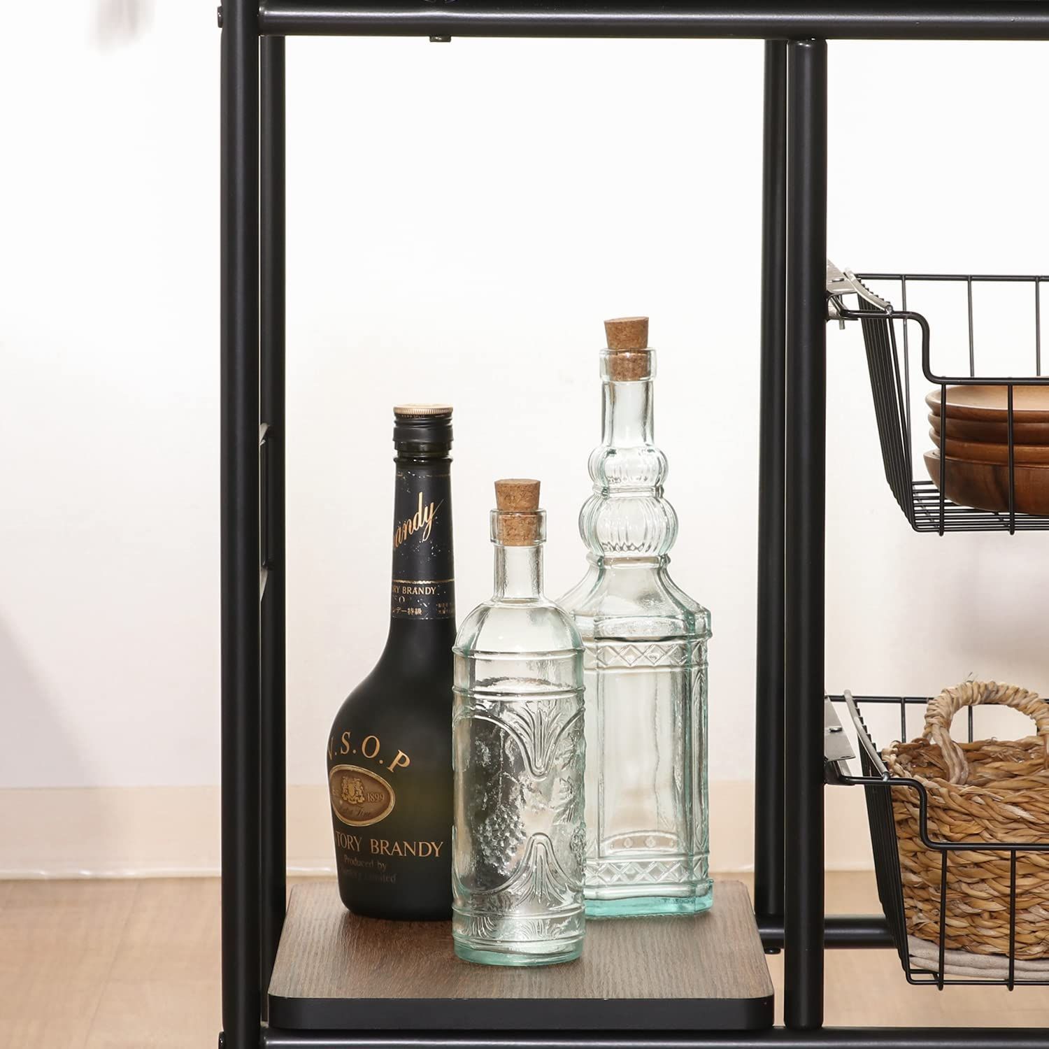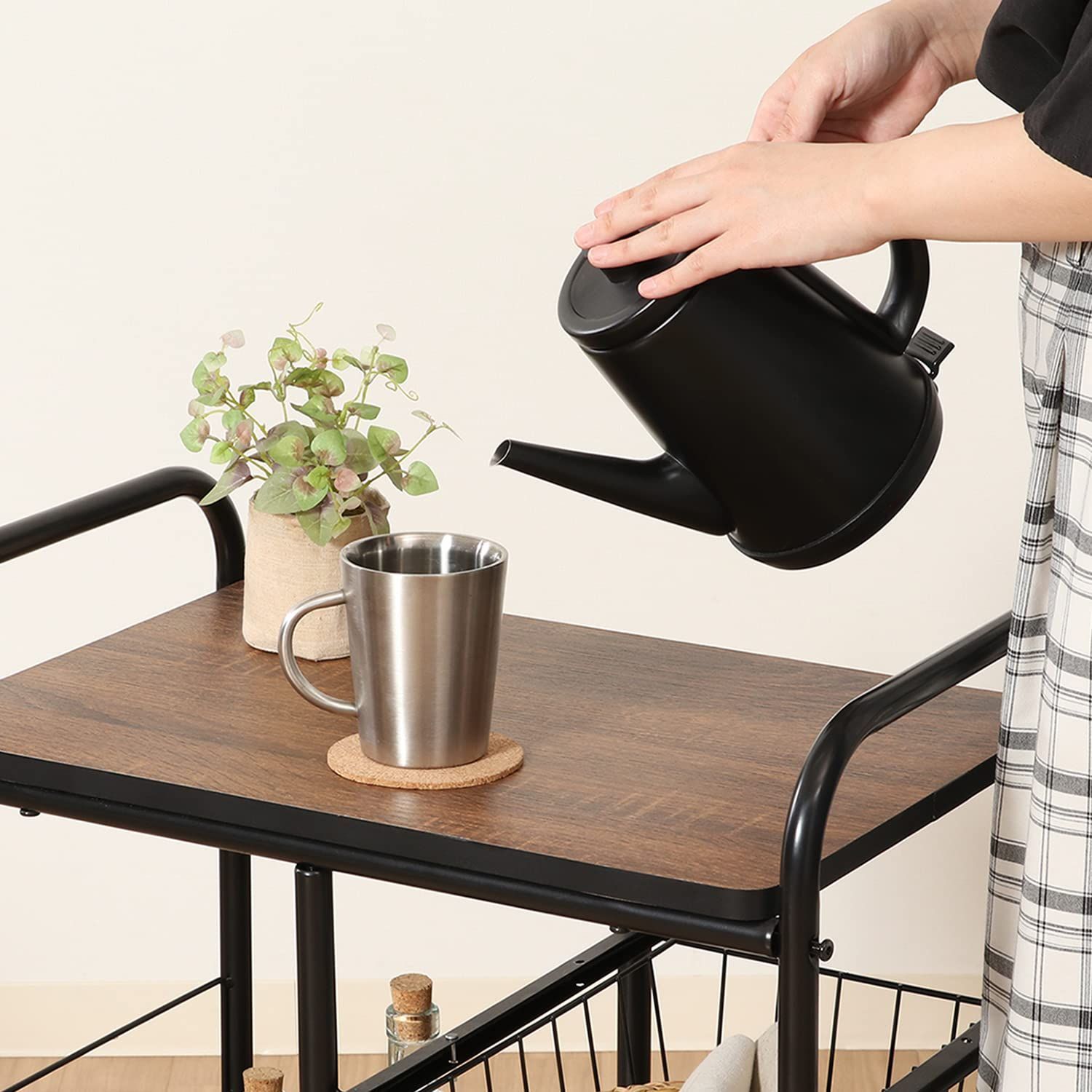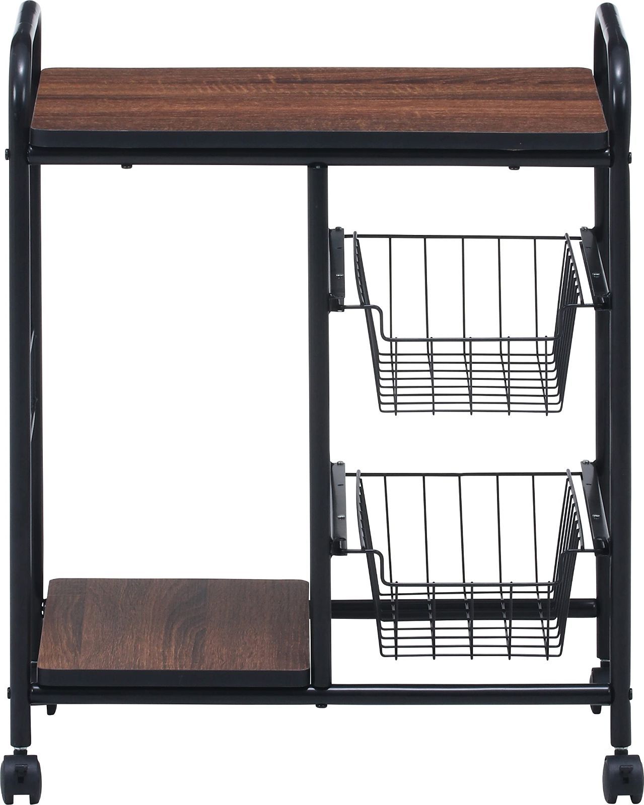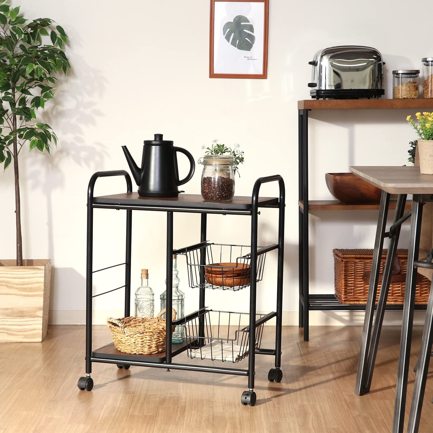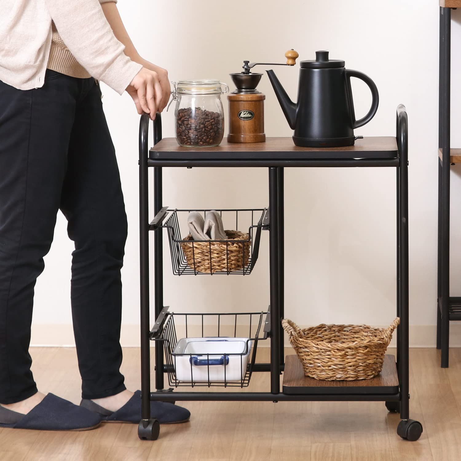 不二貿易 キッチンワゴン キャスター付き キッチンラック レンジ台 一人暮らし スライド棚 引き出し収納 バスケット付き 幅56×奥行35.5×高さ69.5cm ブラック ブラウン 14639