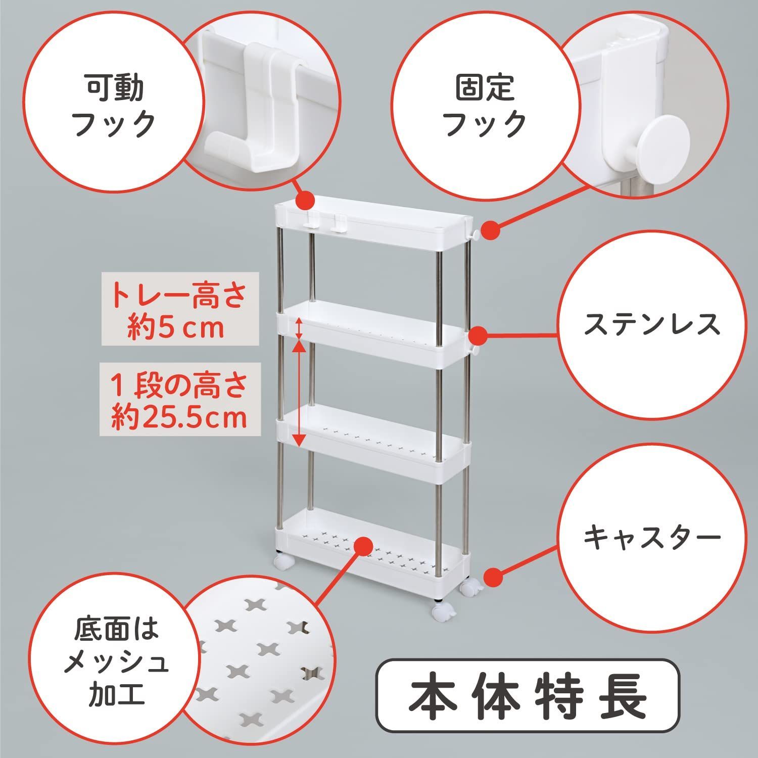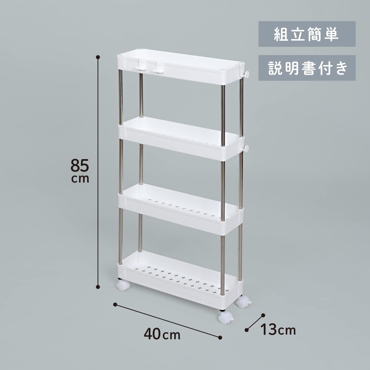 アストロ 【使い方動画あり】 キッチンワゴン ホワイト スリム 4段 キャスター付き 収納ワゴン キッチンラック 収納カート 調味料ラック 隙間収納 310-28