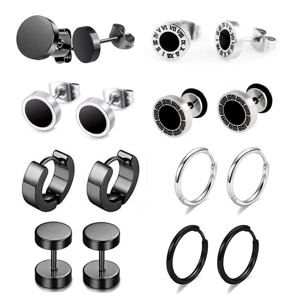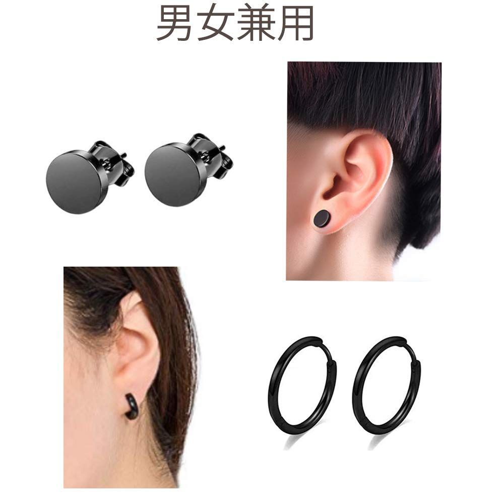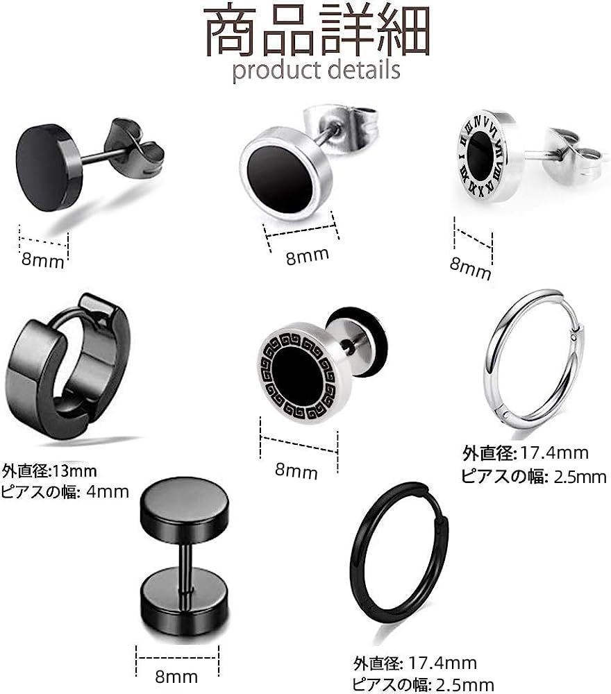 8ペア ピアス メンズ ブラック シルバー レディース 黒ピアス イヤリング スタッド ピアス フープ リング ユニセックス 両耳用 ステンレス ステンレス 金属アレルギー対応 ピアス 誕生日プレゼント