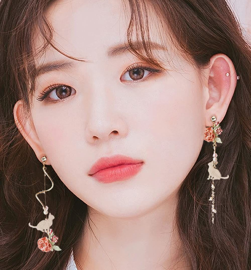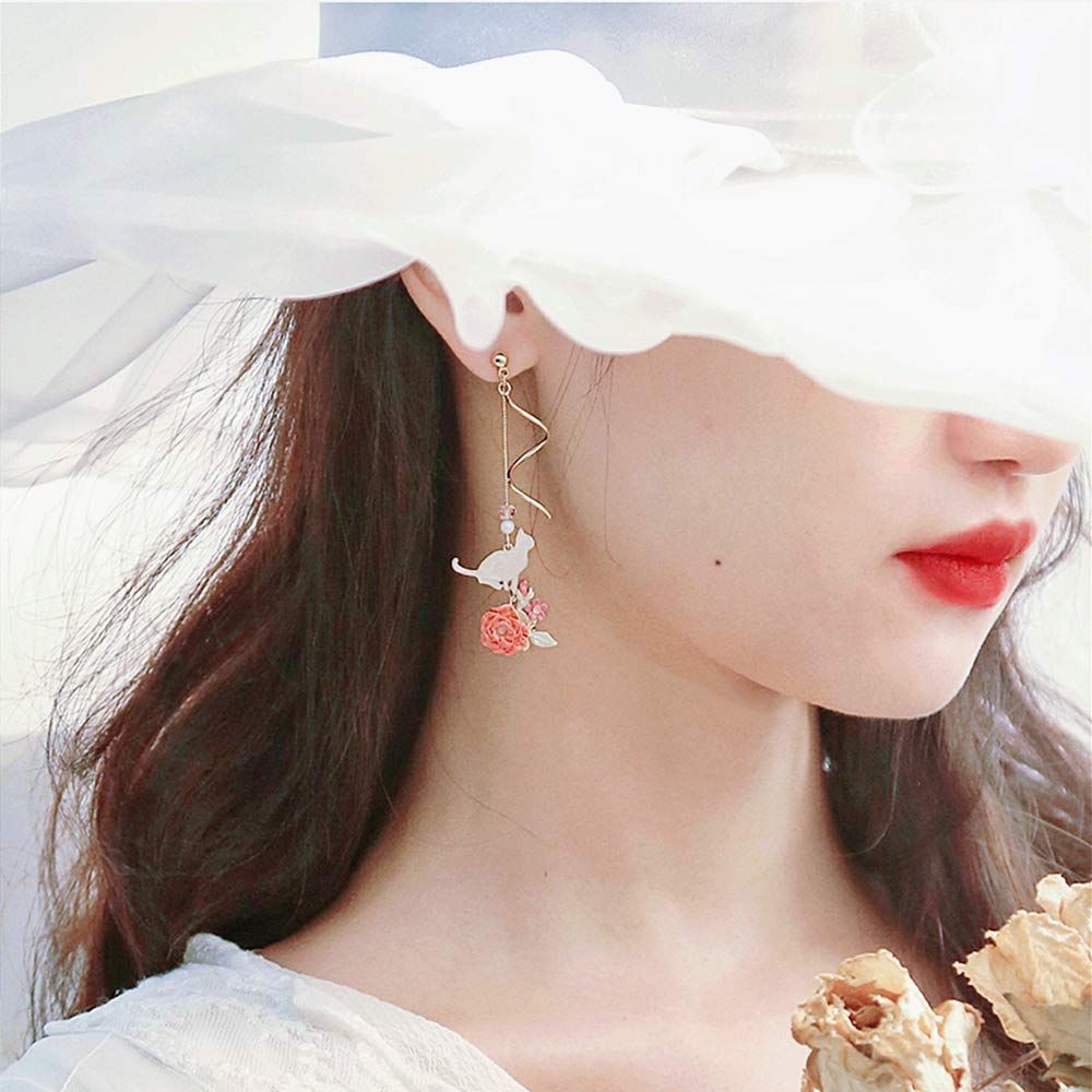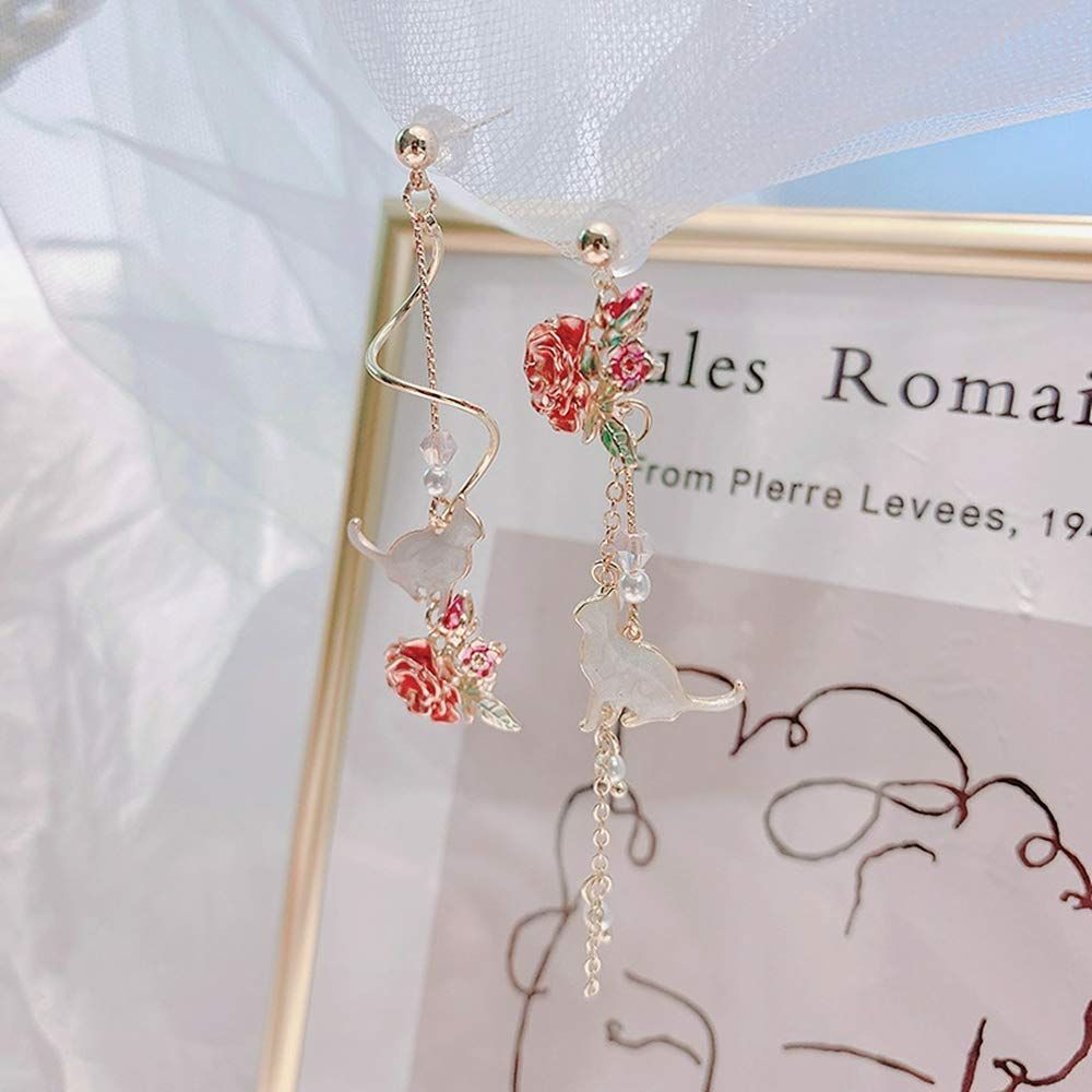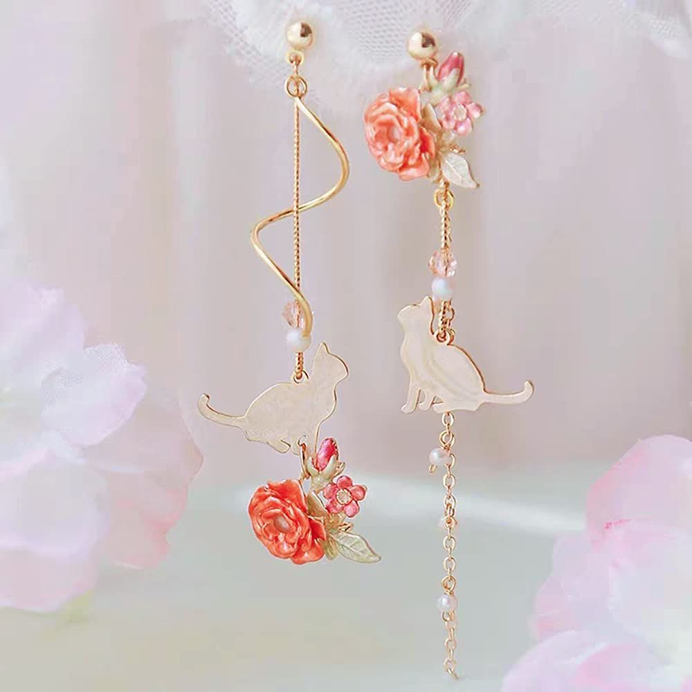 【商品の特徴】きれいで立体感があるの薔薇、可愛い猫、艶やかな琺瑯着色、絶妙な組み合わせ、大人可愛いと華麗さを失わない揺れるレーディス花ピアスです。揺れる度に高級感を湧き立たせ、お顔周りをぐっと華やかに、存在感しっかり!ロングピアスの小顔効果も抜群!