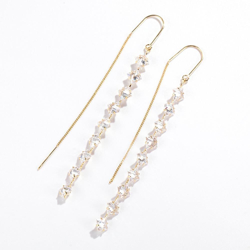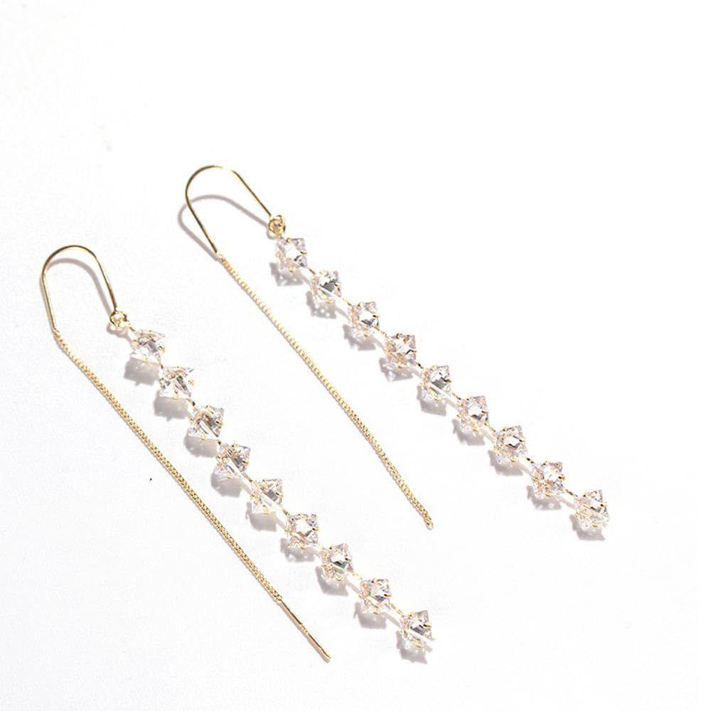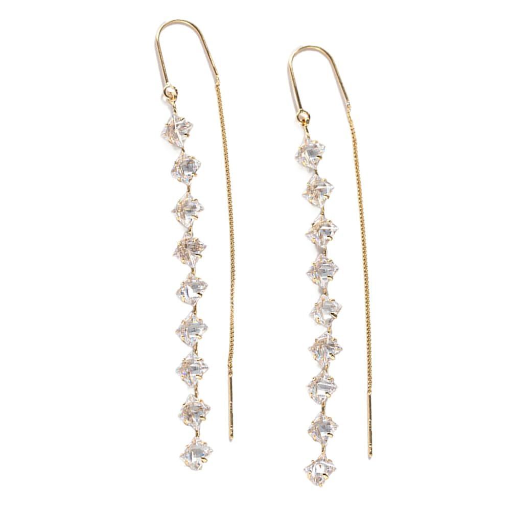 K.L.Y ピアス レディース キュービックジルコニア スィング デザイン ピアス 18金RGP 長いデザイン シンプル フェミニン 大人 レディース イヤリング シルバー925(ゴールド)