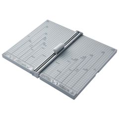 商品仕様・サイズ/A4・外寸法/W282×D402×H75mm・重量/1.3㎏・裁断能力(約1往復裁断)/PPC用紙10枚※・材質/金属部:鋼板、樹脂部:ABS・POM・付属品/丸刃1枚(本体セット済み)・刃受け1枚(本体セット済み)・丸刃収納用空ケース1個・ミシン目刃は、PPC用紙3枚以下でご使用ください。