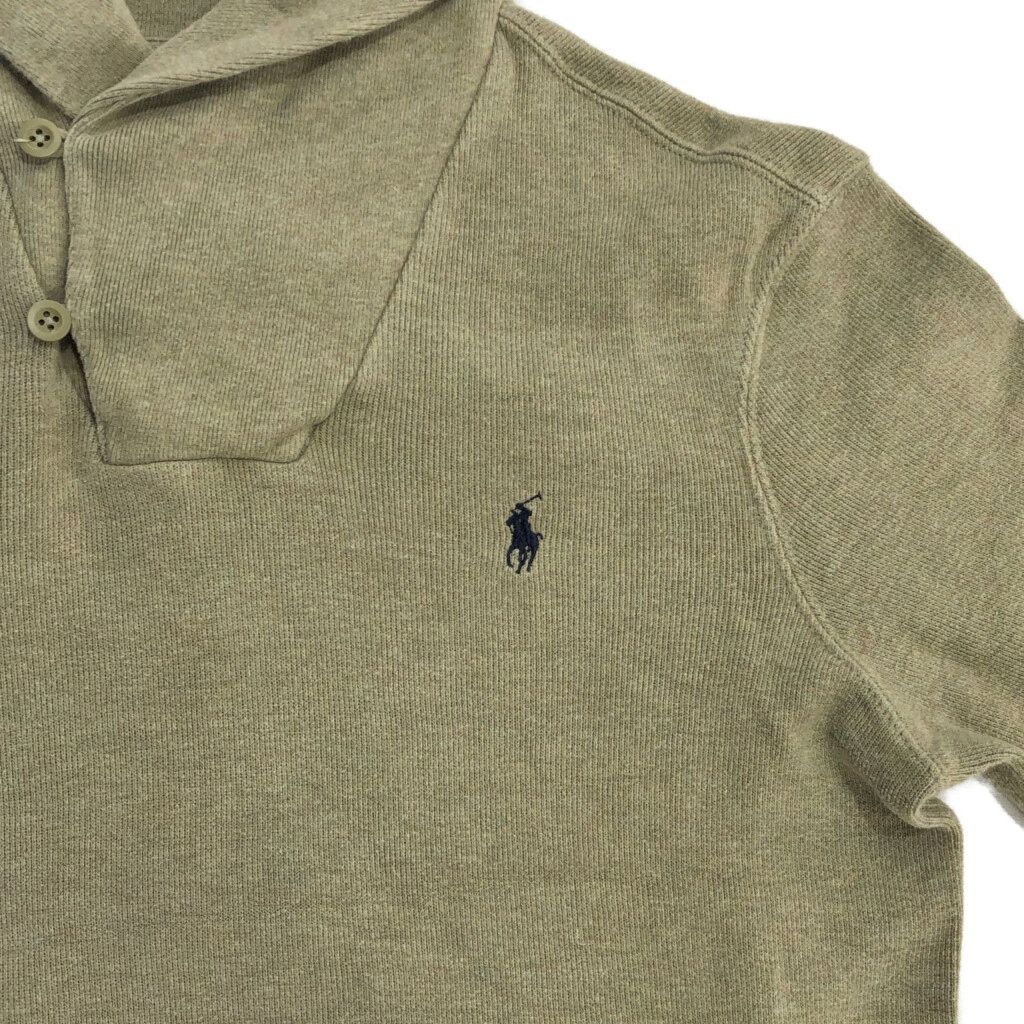 Polo by Ralph Lauren ポロ ラルフローレン ポロプレイヤー刺 ショールカラー セーター カーキ(メンズ S)中古 古着 U8808