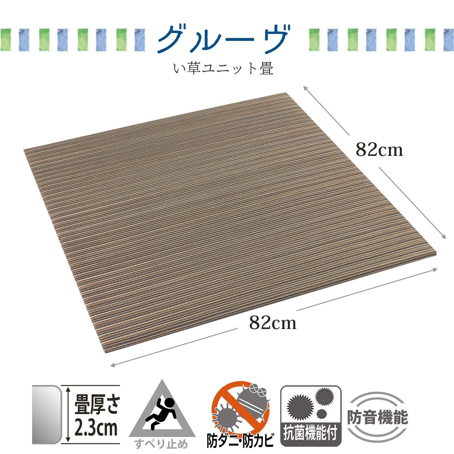大島屋 畳 ブラウン 約82×82×2.3cm イ草 ユニット畳 グルーヴ ブラウン 82×82×2.3cm