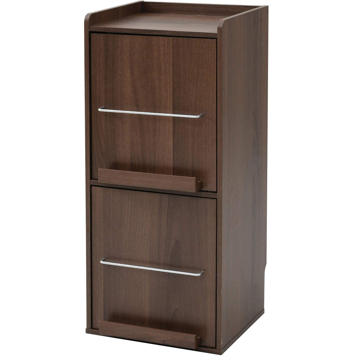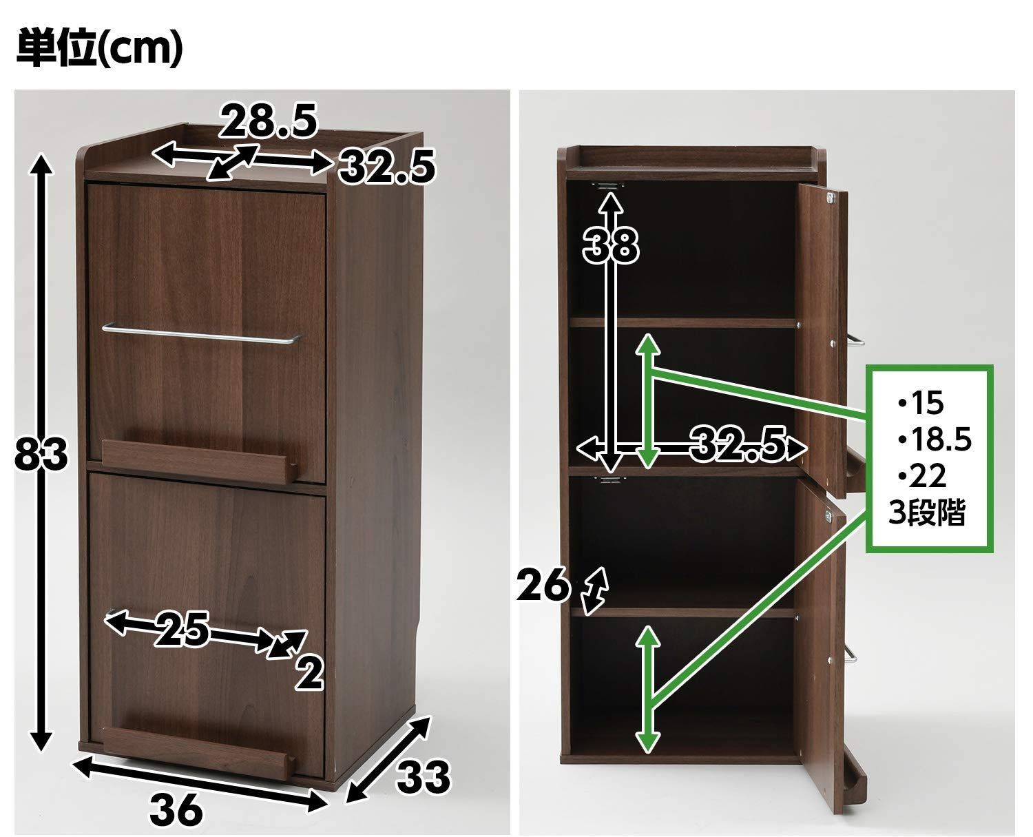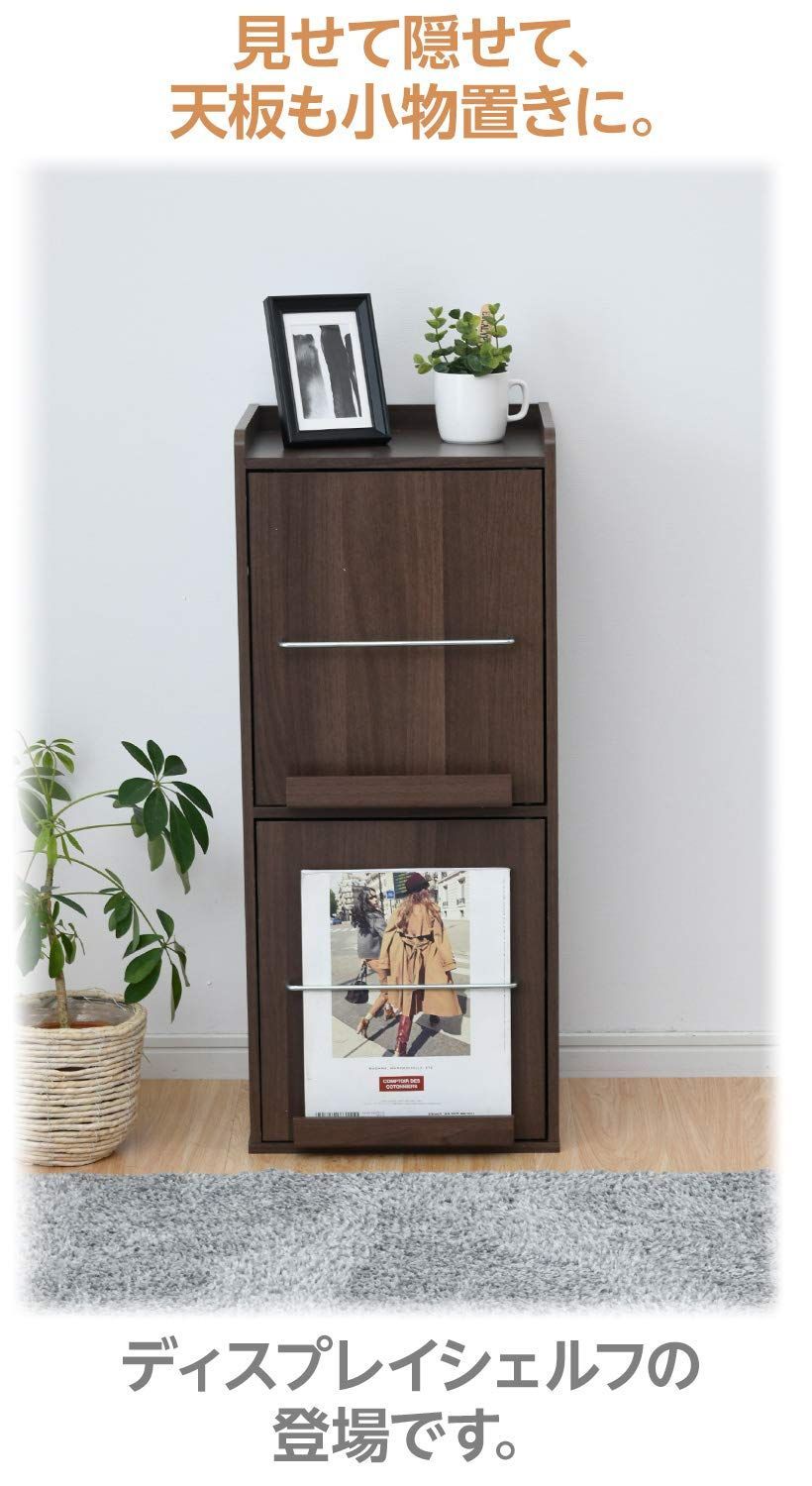 山善(YAMAZEN) ディスプレイラック マガジンラック 幅35.5×奥行33×高さ82.5cm 天板こぼれ止め 中棚高さ調節可能 左右開閉式 組立品 ウォルナット CDM-1X2D(WL)