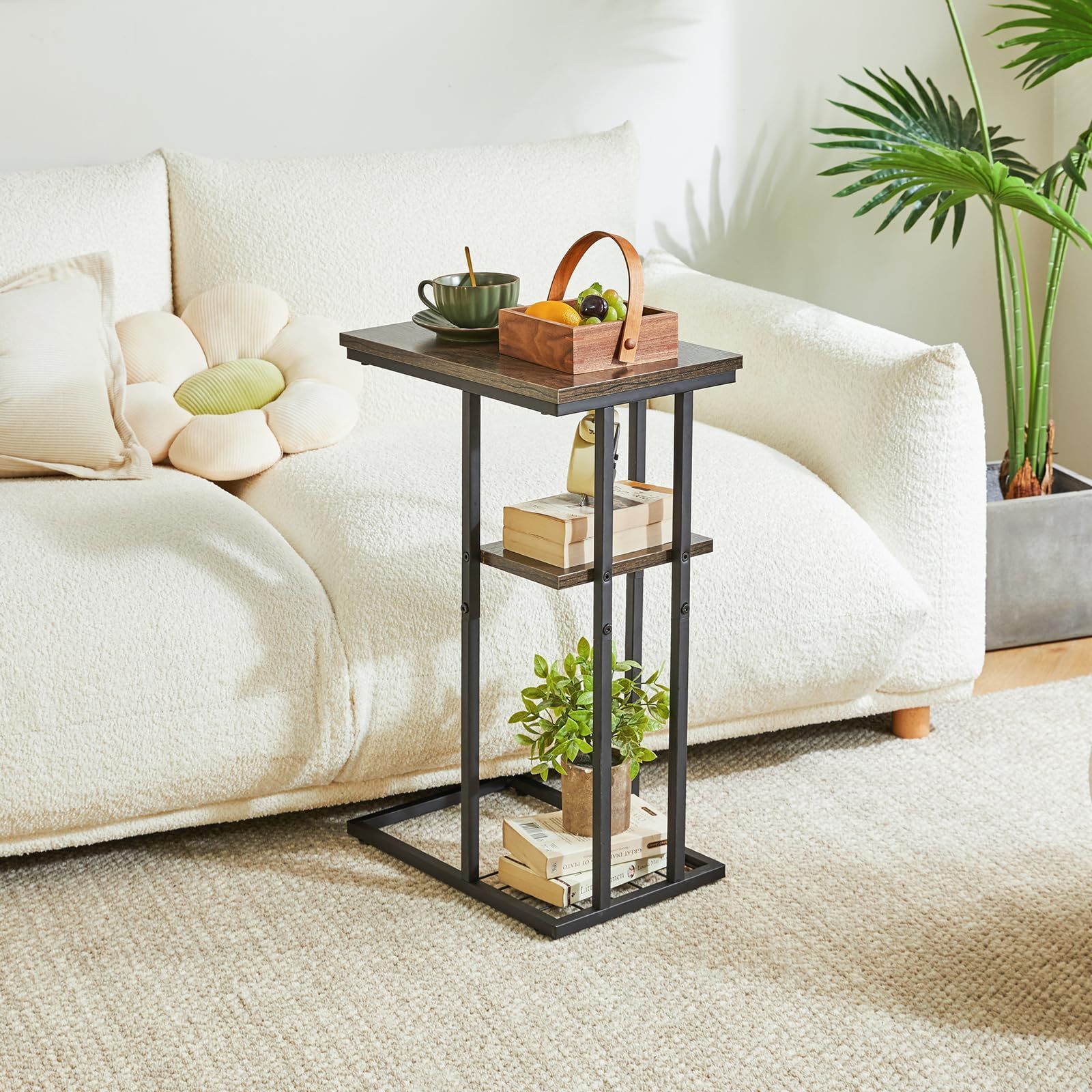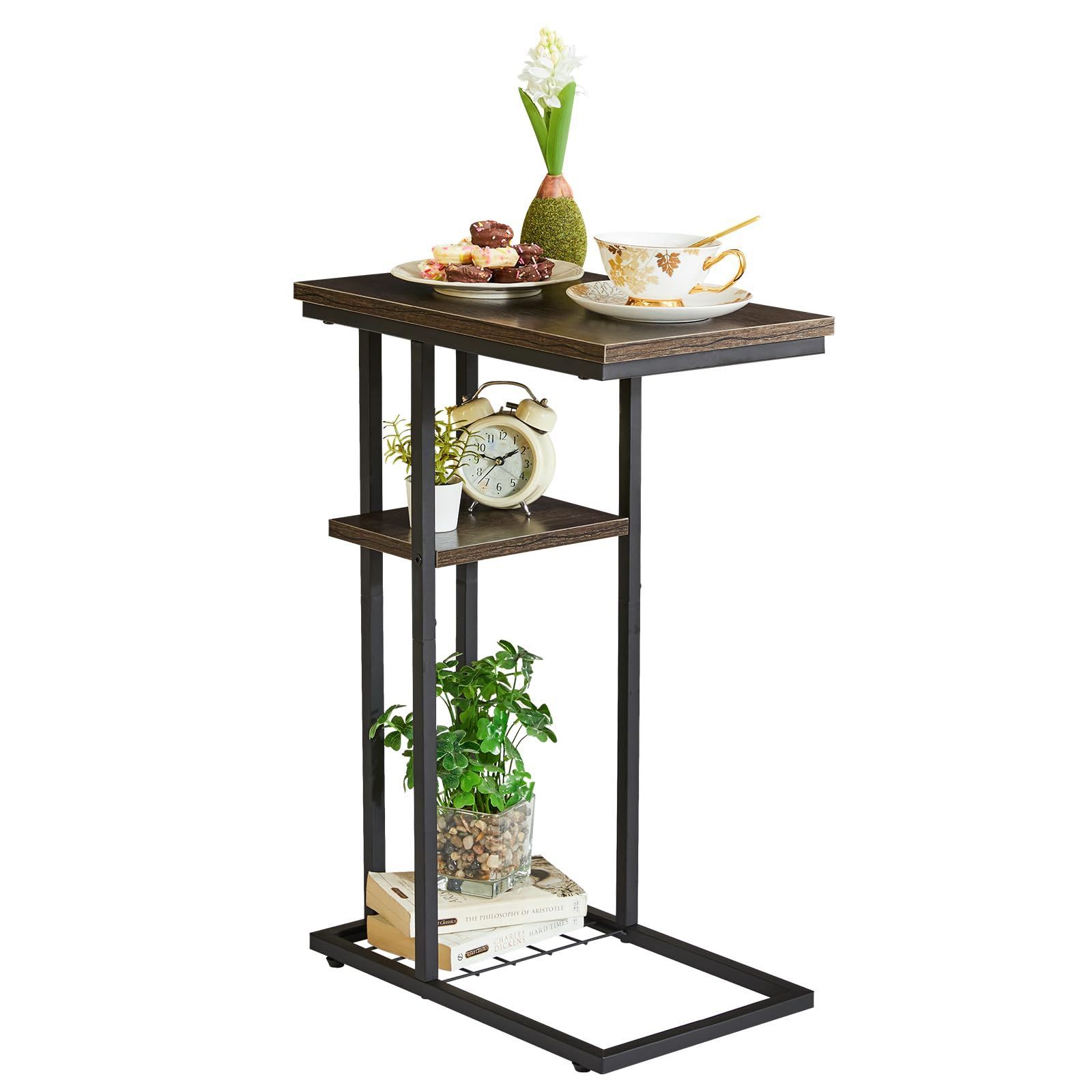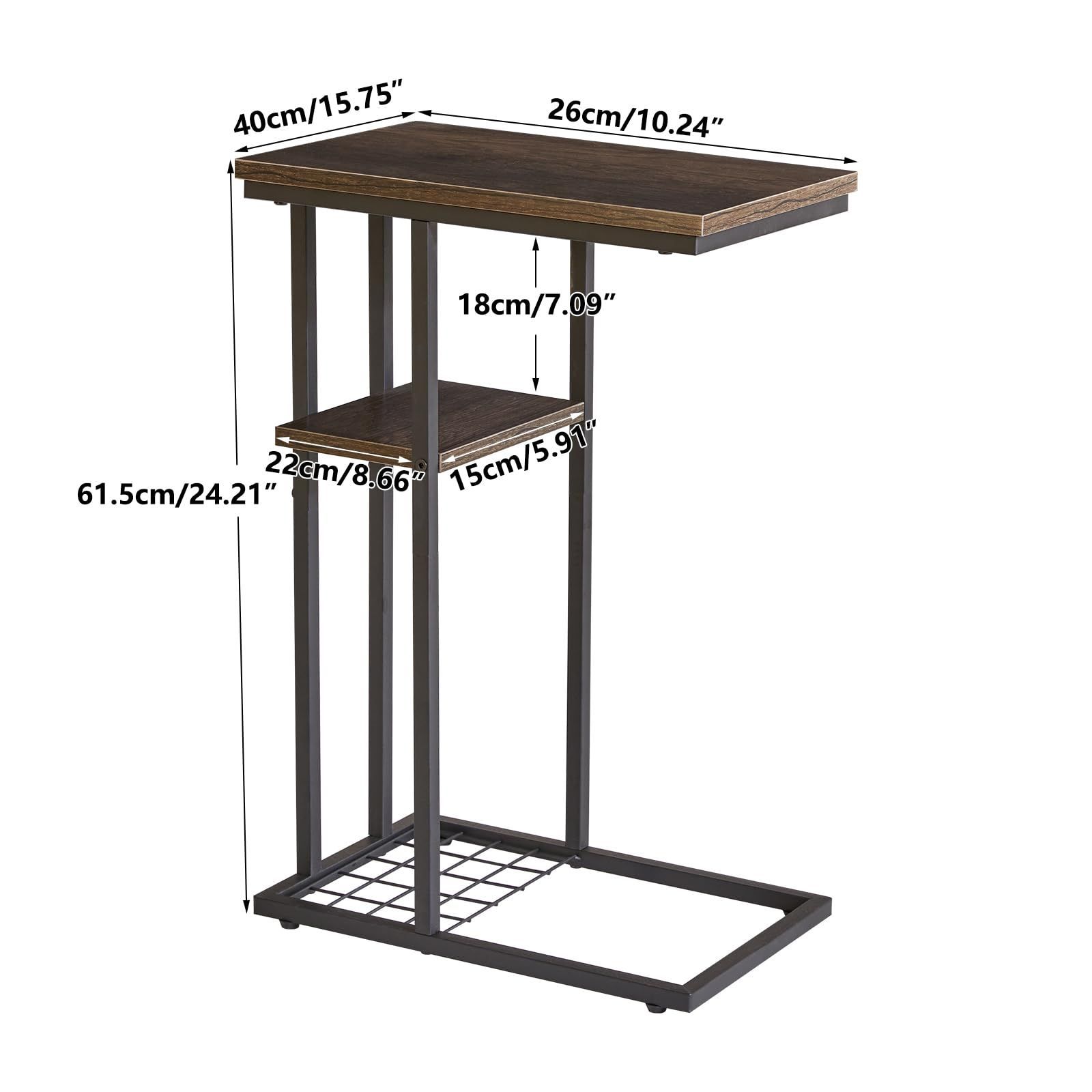 YMYNY C形茶卓、サイドテーブル、ソファ サイドテーブル、ベッドサイドテーブル、ヴィンテージ風、メッシュパネル付き、安定した、組立簡単、40×26×61.5cm、リビングルーム、寝室、グレイブラック JPHST004G