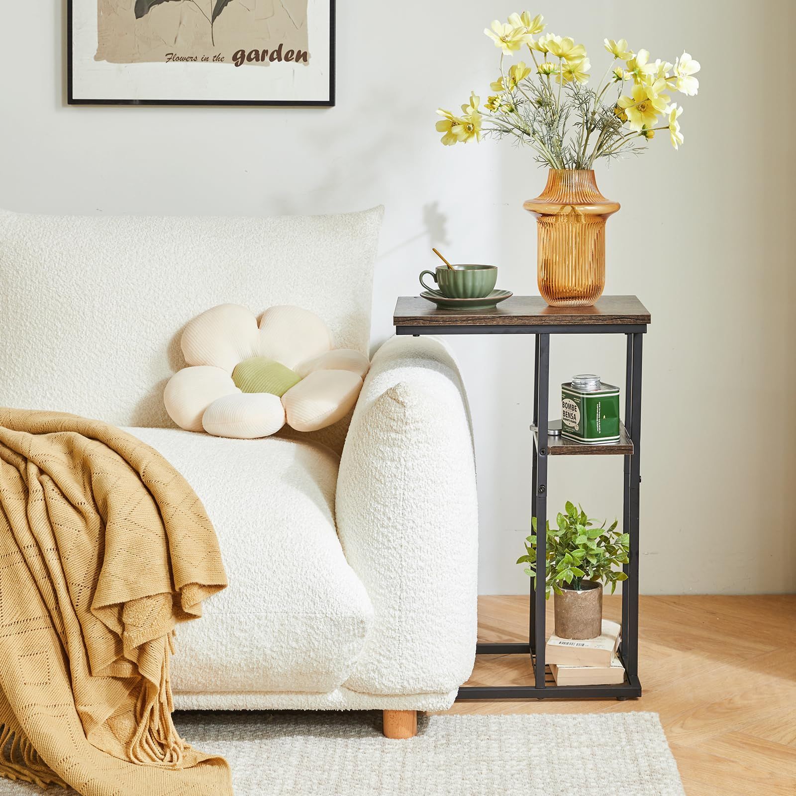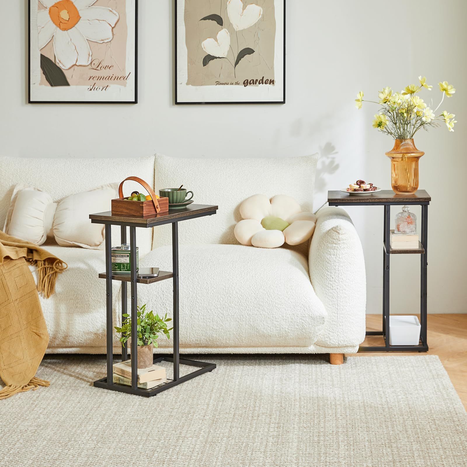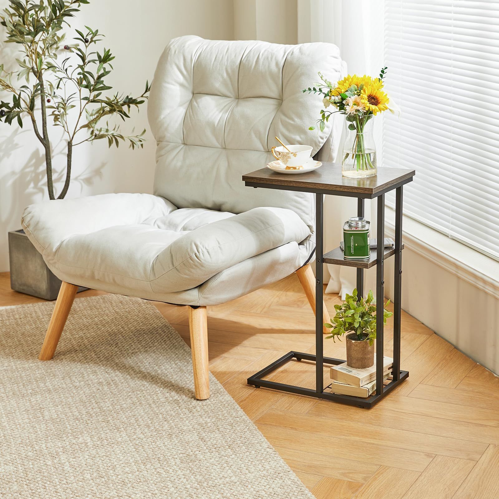 コの字型設計:コの字型型設計は簡単で実用的です。サイドテーブルの足はソファやベッドの下に簡単に滑ることができ、起きずにリモコンやパソコン、本を手に取ることができます。仕事、レジャー、スナック、コーヒーを気軽に楽しむ。