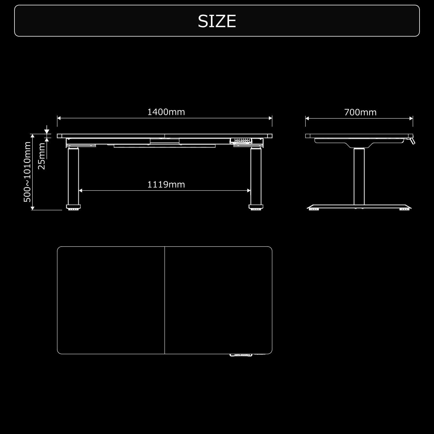 ボタン操作の電動昇降で、天板の高さを床から50~101cmの範囲で調節できます。