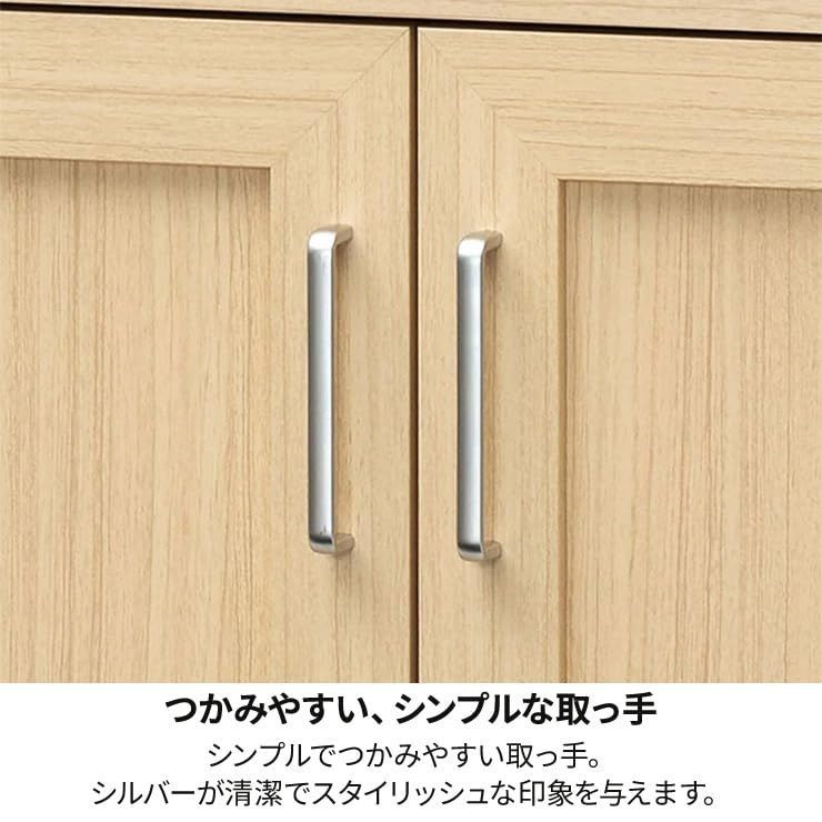引き出しと扉にはシンプルなシルバーの引手。