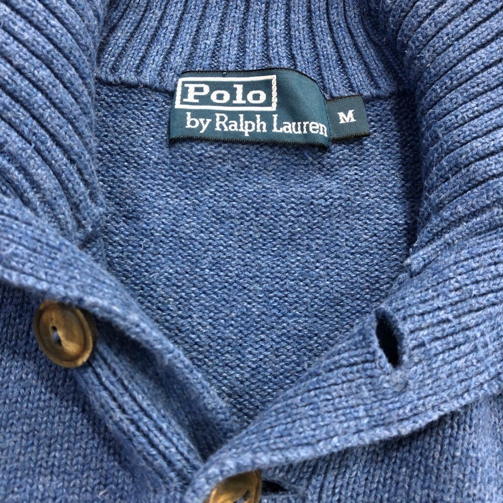 Polo by Ralph Lauren ポロ ラルフローレン ポロプレイヤー刺 ボタン付きモックネック セーター ブルー(メンズ M)中古 古着 U9228
