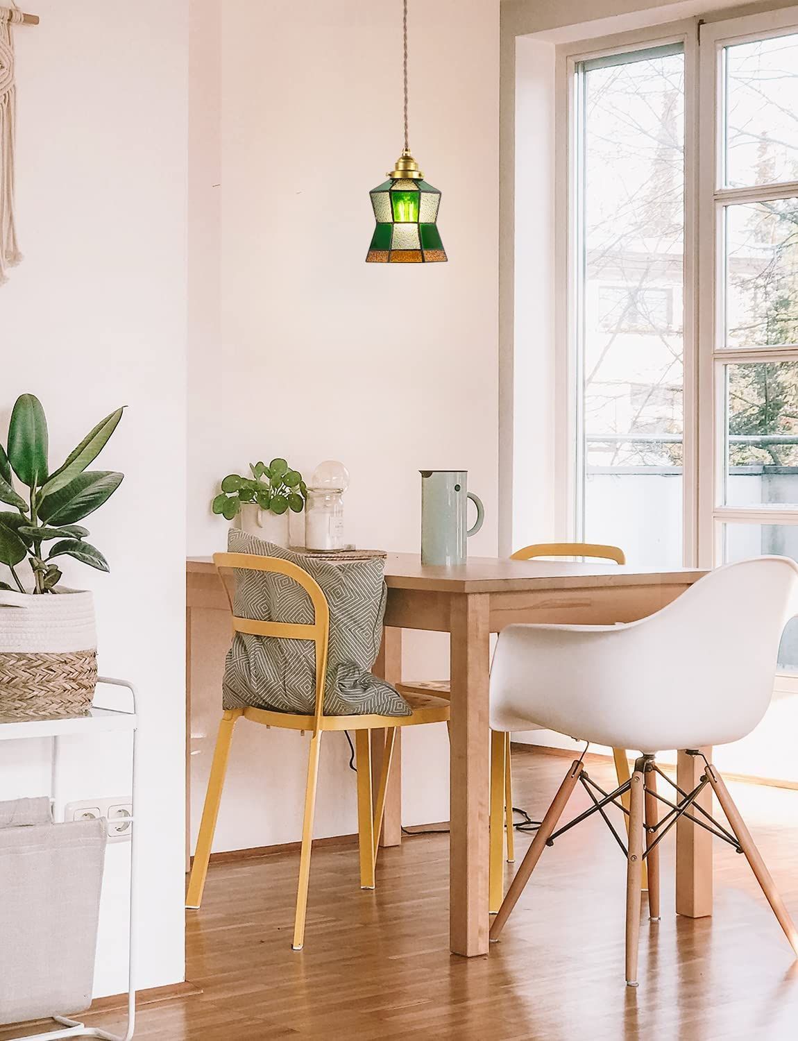シンプルなデザイン:ガラスシェードつきのシンプルな1灯ペンダントライト。天井、壁に合わせやすく、きらびやかな灯りが溢れ、壁に美しい陰影を映し出します。